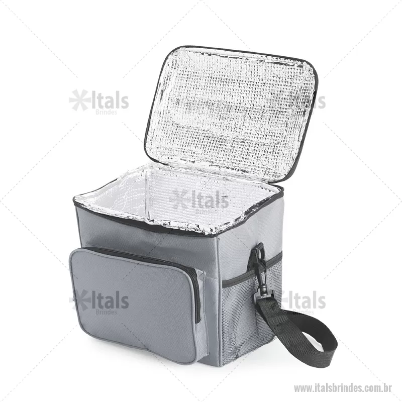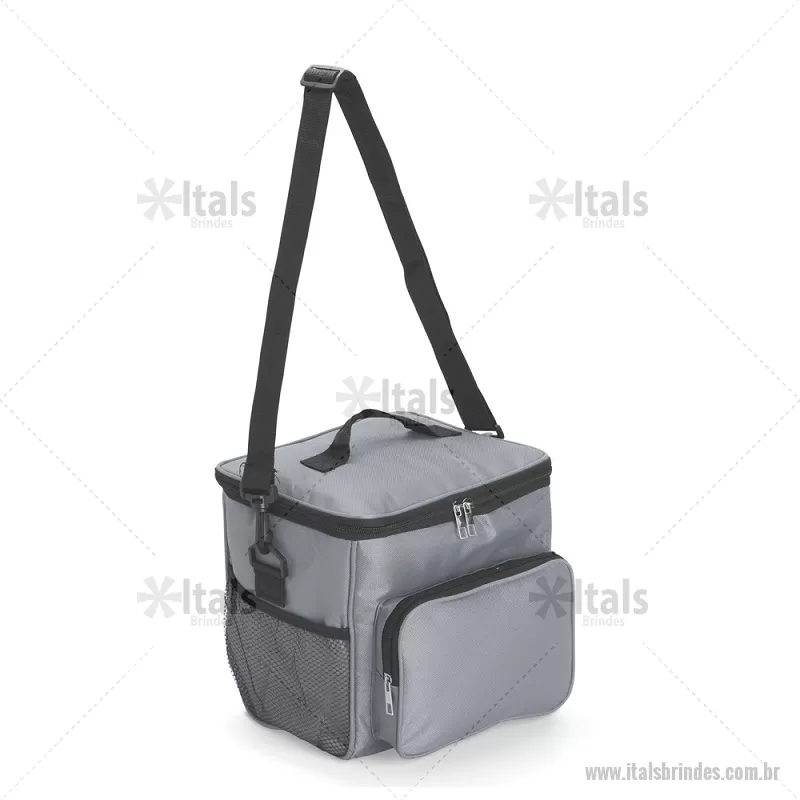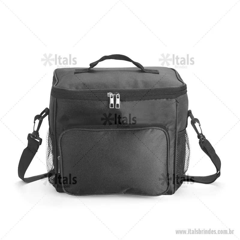 Bolsa térmica de 11 litros feita em Oxford resistente à água, com revestimento interno em alumínio para melhor conservação de temperatura. Conta com bolso frontal, dois bolsos laterais em tela, alça fixa na tampa e alça transversal. Prática e ideal para transportar alimentos e bebidas no dia a dia. - - ITABT099