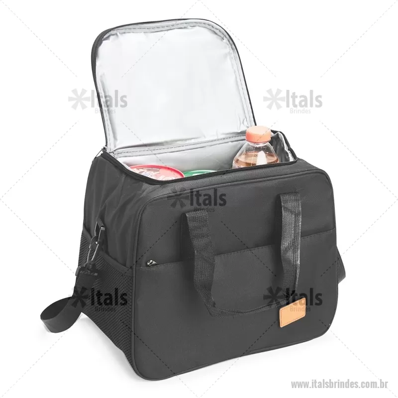 Bolsa térmica de 20 litros feita em Oxford, com fechamento em zíper e revestimento interno em PEVA. Possui bolso frontal, dois bolsos laterais em tela, alças de mão com suporte de junção e alça transversal regulável e removível. Acompanha plaquinha em couro sintético fixada por velcro. Ideal para transportar alimentos e bebidas com praticidade. - - ITABT102
