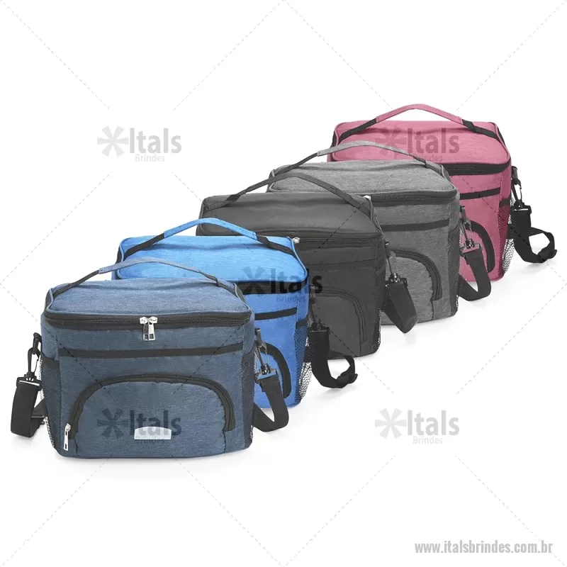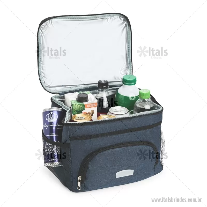 Bolsa térmica de 10 litros feita em poliéster resistente à água, com revestimento interno em PVC laminado. Conta com bolso frontal com zíper, dois bolsos laterais em tela, alça superior fixa e alça transversal removível. Prática e ideal para levar alimentos e bebidas no dia a dia. - - ITABT103