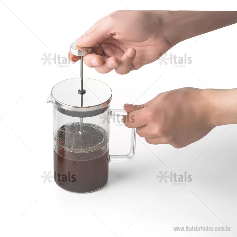 Cafeteira em vidro borossilicato com tampa em aço inox 600 mL Fornecida em caixa presente de papel kraft reciclado. Certificação EU Food Grade. Medidas produto: ø95 x 170 mm Peso do Produto (g.): 479 - - ITACOZ034