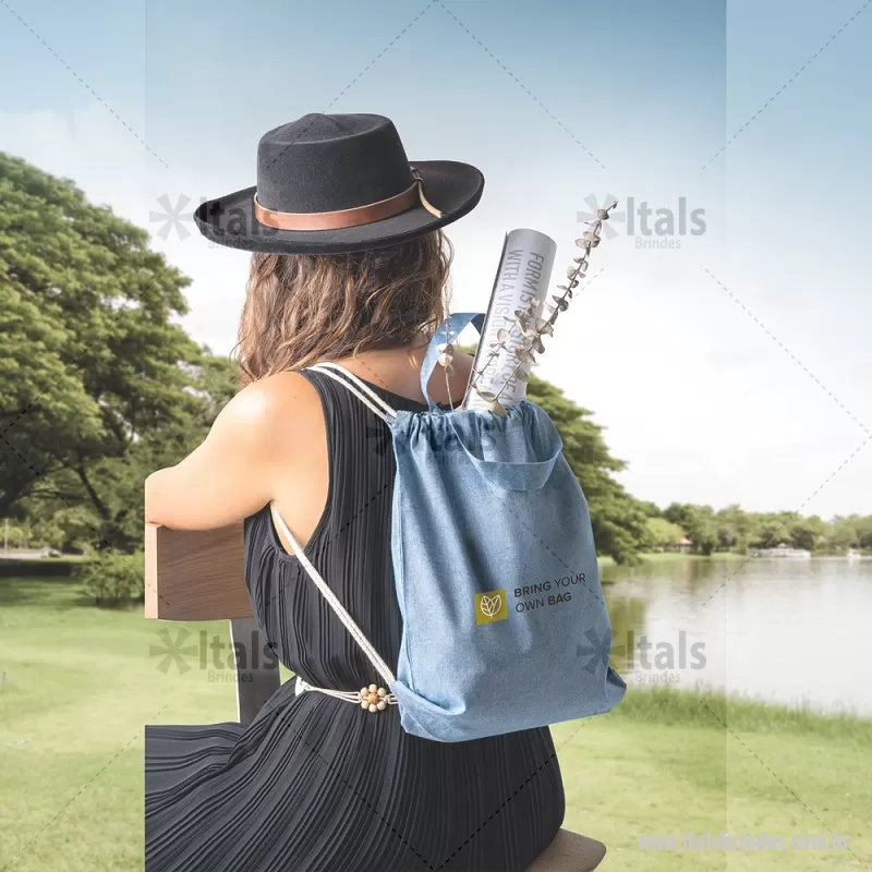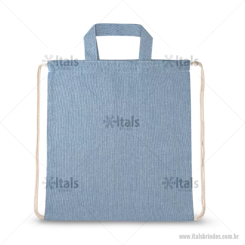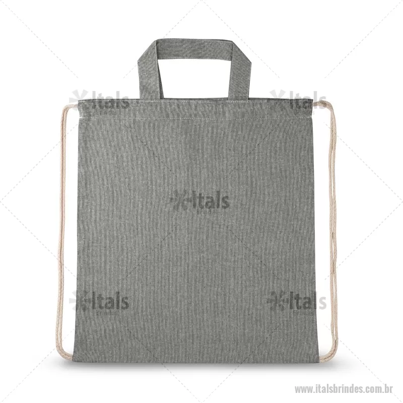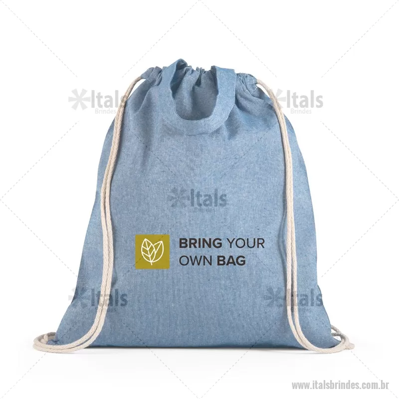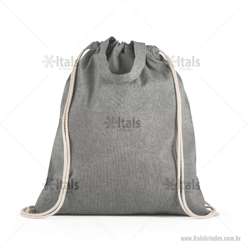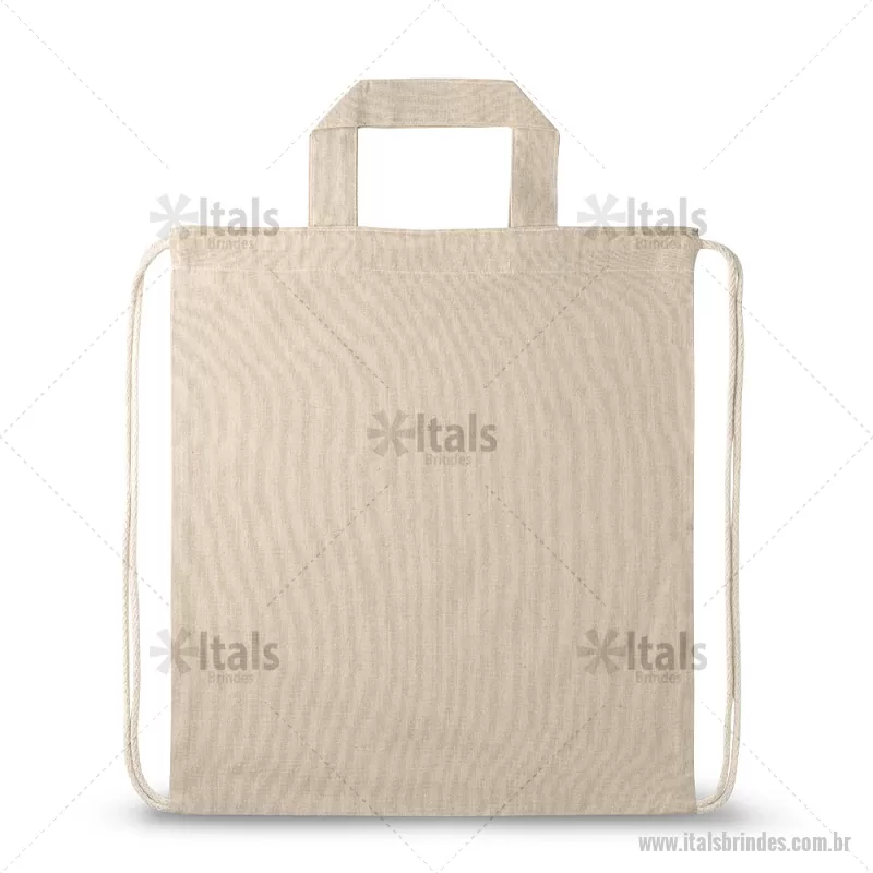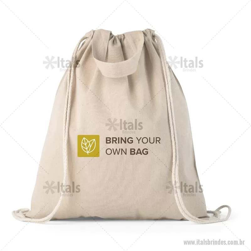 Sacola tipo mochila saco em 70% algodão reciclado e 30% poliéster reciclado (140g/m²), com alças 30 cm. O tecido é sem tingimento, e utilizado na sua cor original, sem produtos químicos de tingimento ou branqueamento, contribuindo para um menor impacto ambiental. Medidas: 370 x 410 mm Peso do Produto (g.): 80 gramas - - ITAMCS025