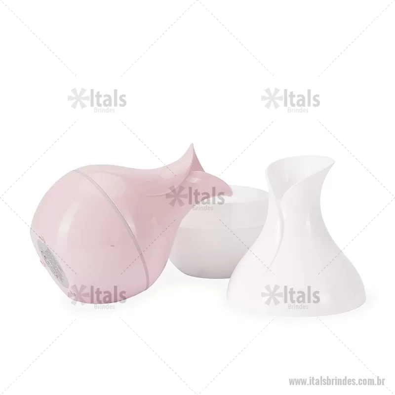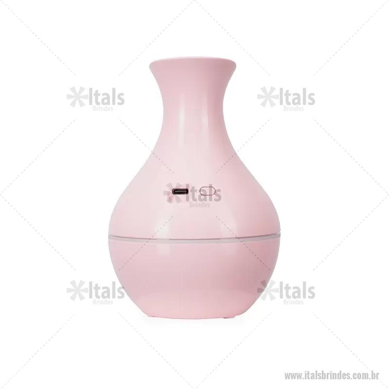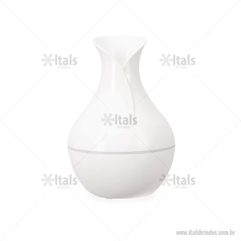 Umidificador de ar em plástico com design tipo vaso, iluminação LED e reservatório de 200 ml. Oferece modos de névoa contínua ou intermitente e funciona conectado a uma fonte de energia via entrada USB-C. Acompanha filtro de algodão e cabo USB-C. - - ITATEC537