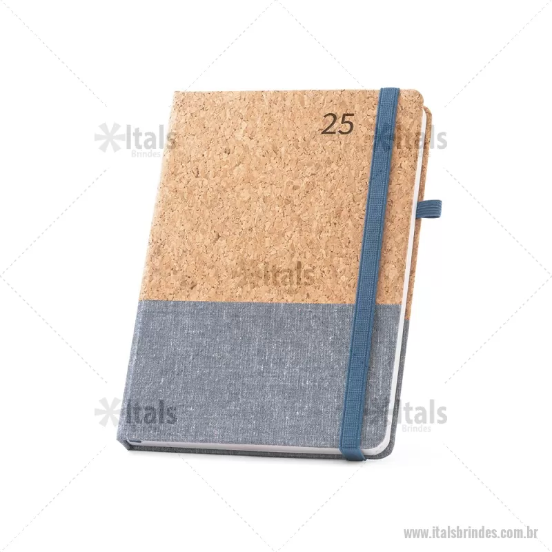 Agenda A5 em cortiça e linho com suporte para esferográfica (não inclusa), marcador em fita e elástico para fecho na mesma cor. Está organizada num plano diário. Miolo da agenda em 2 coresFornecida com bolsa de non-woven. Medidas produto: 148 x 210 mm | Bolsa: 205 x 250 mm - - ITAAGE031