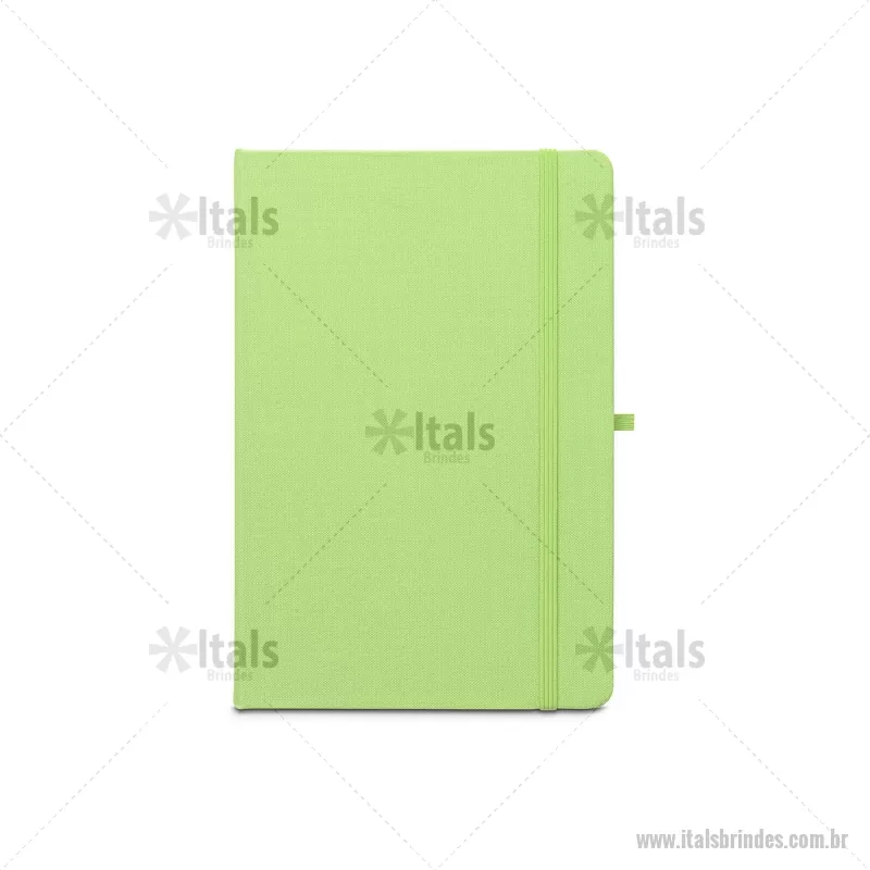 Caderno A5 de capa dura em poliéster 100% reciclado (100% rPET) com cantos redondos. Contém 80 folhas pautadas em papel cor de marfim reciclado, fita separadora, suporte para esferográfica (não inclusa) e elástico para fecho do caderno. Na parte inferior da lombada, tem impresso em branco o símbolo do rPET. 14,3 x 21,1 cm - - ITABLC237