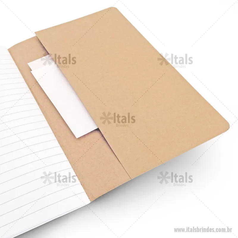Bloco de anotações A5 com 40 folhas pautadas de papel reciclado e capa em cartão com bolso interior. 144 x 210 mm - - ITABLC208