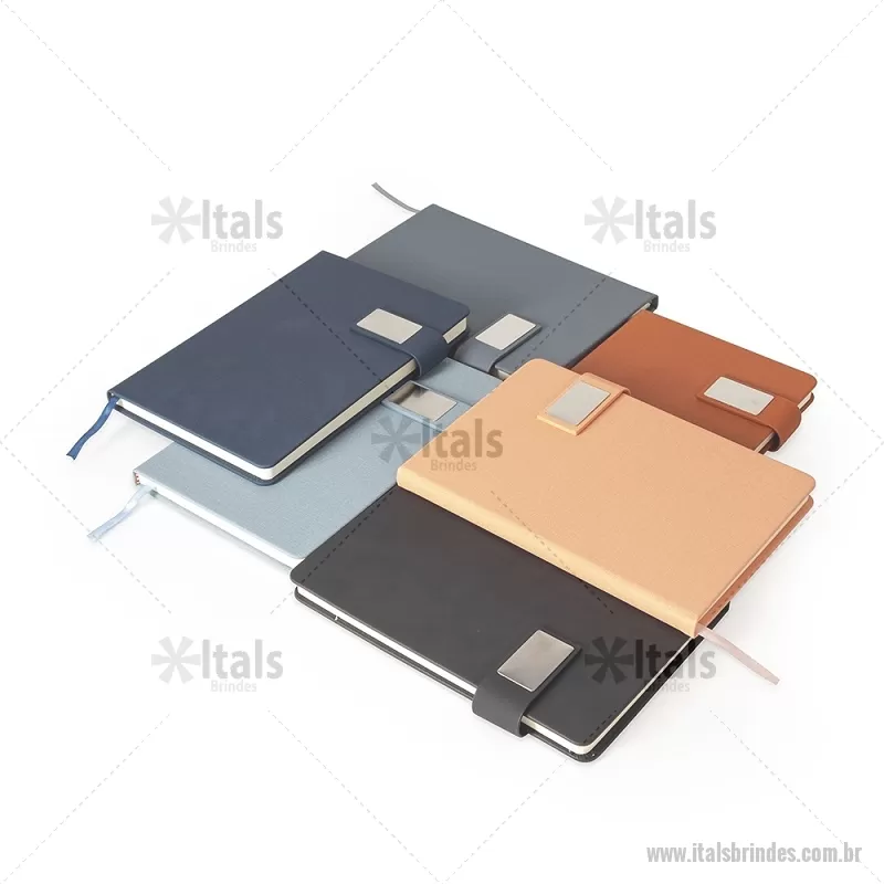 Caderneta de capa dura confeccionada em couro sintético, com acabamento elegante e fecho magnético para maior praticidade. Possui placa metálica personalizável na capa, ideal para aplicação de logotipo ou nome. Conta ainda com marca-página em fita de cetim e aproximadamente 96 folhas internas brancas pautadas, proporcionando organização e conforto na escrita. - - ITABLC281