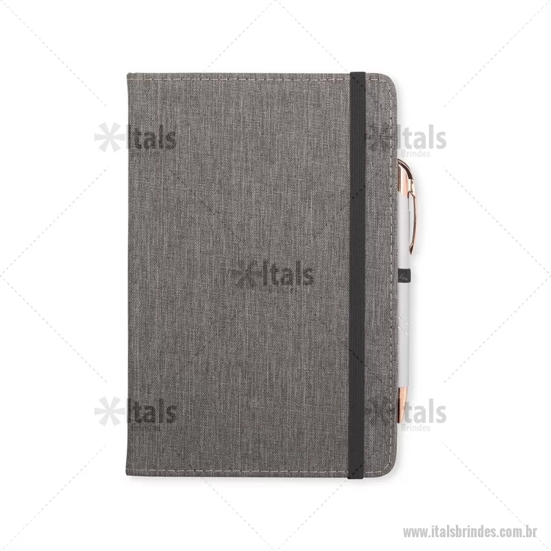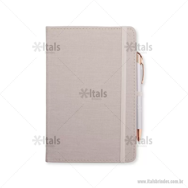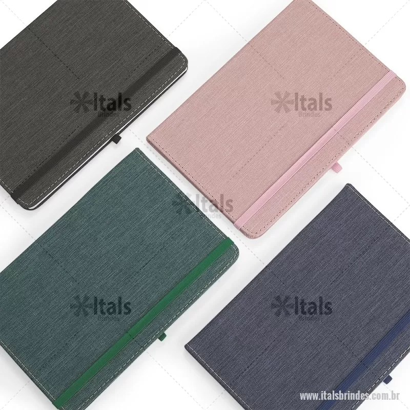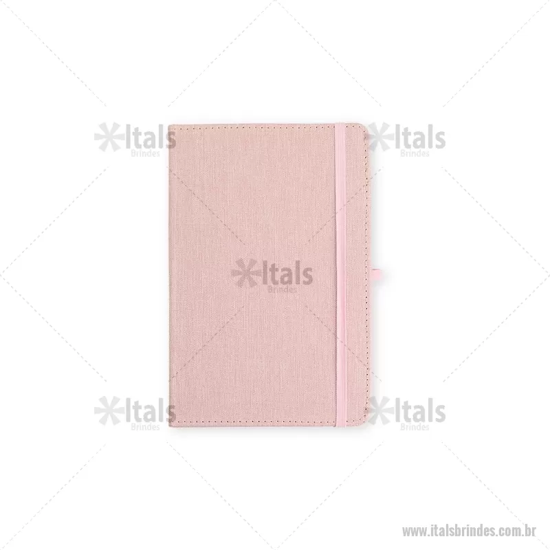 Caderneta com capa dura em linho, equipada com elástico para fechamento, marca-páginas em fita de cetim e porta-caneta. Contém aproximadamente 80 folhas pautadas, ideal para anotações do dia a dia. - - ITABLC271