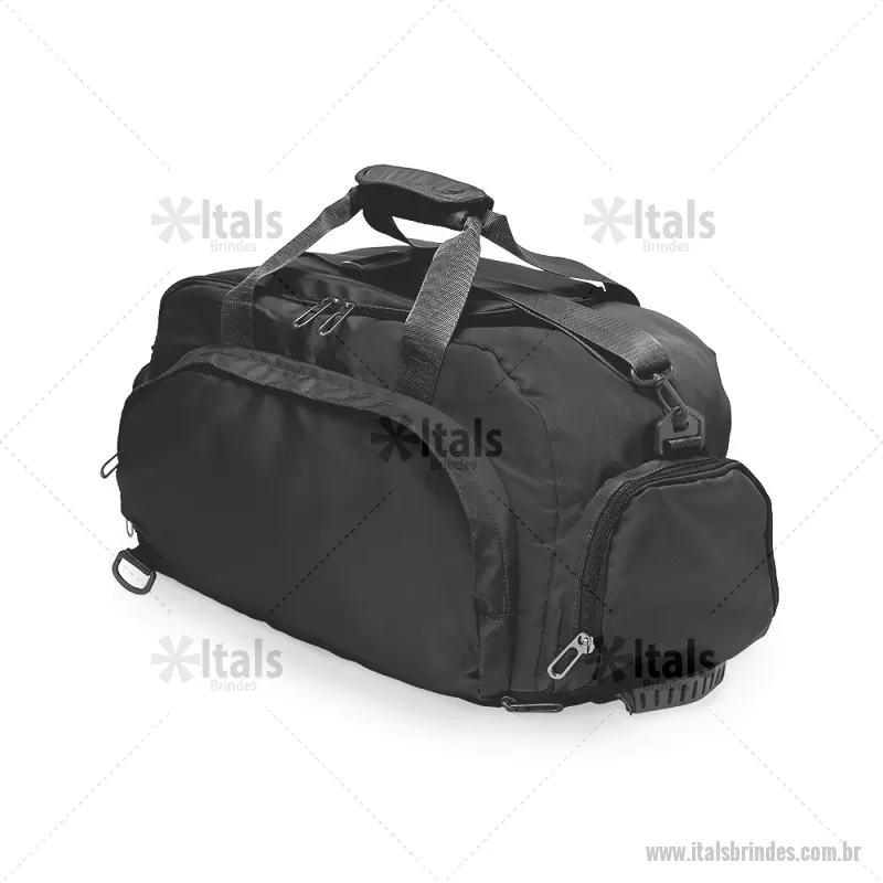 Bolsa esportiva com capacidade de até 28 litros em poliéster resistente à água com cinco compartimentos, incluindo espaço exclusivos para Tênis / Sapatos, itens molhados e para o armazenamento da alça de costas, o que permite utilizá-la como mochila. Possui ainda alça transversal removível, alças de mãos com suporte de juntura. Altura : 20 cm x Largura : 43 cm x profundidade : 21 cm Medidas aproximadas para gravação (CxL): 16 cm x 34 cm Peso aproximado (g): 507 - - ITABOL023