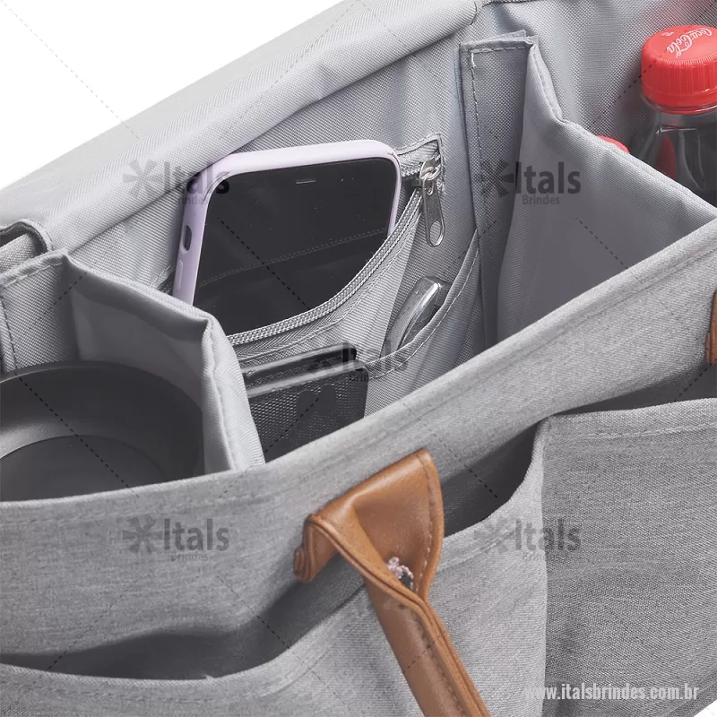 Bolsa Multifuncional em poliéster com detalhes em PU, possui 5 compartimentos externos. Conta com alças de ombro e mão em PU, engate para carrinho de bebê e velcro para fechamento interno. O interior oferece 5 divisórias removíveis, sendo uma com zíper e uma com tecido térmico, proporcionando praticidade e organização. Dimensão Produto: 22x41x16cm (AxLxP) Peso do Produto: 660 gramas - - ITABOL037