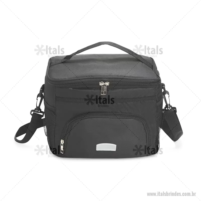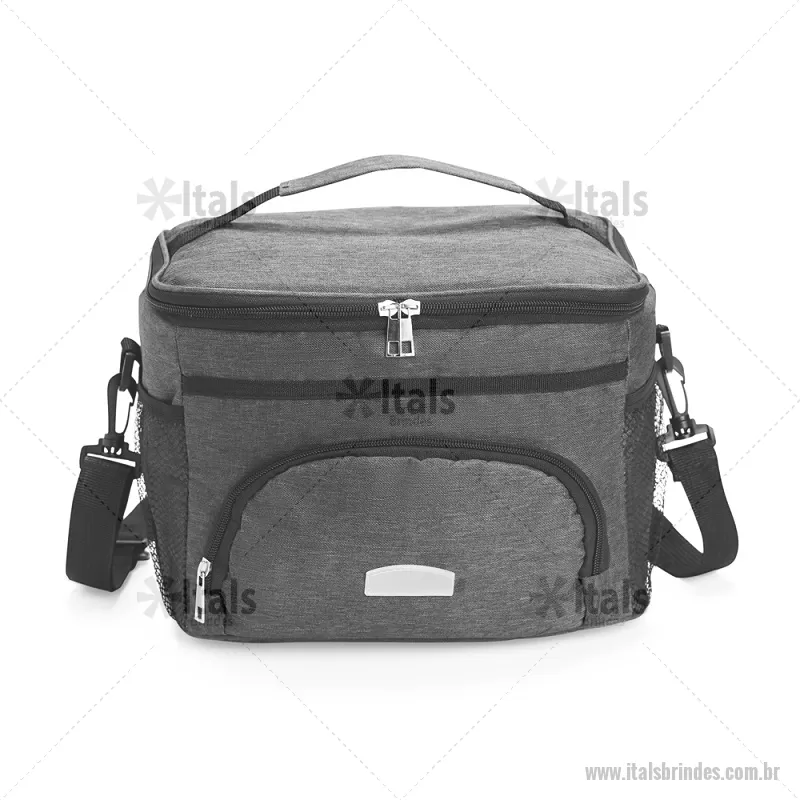 Bolsa térmica de 10 litros feita em poliéster resistente à água, com revestimento interno em PVC laminado. Conta com bolso frontal com zíper, dois bolsos laterais em tela, alça superior fixa e alça transversal removível. Prática e ideal para levar alimentos e bebidas no dia a dia. - - ITABT103