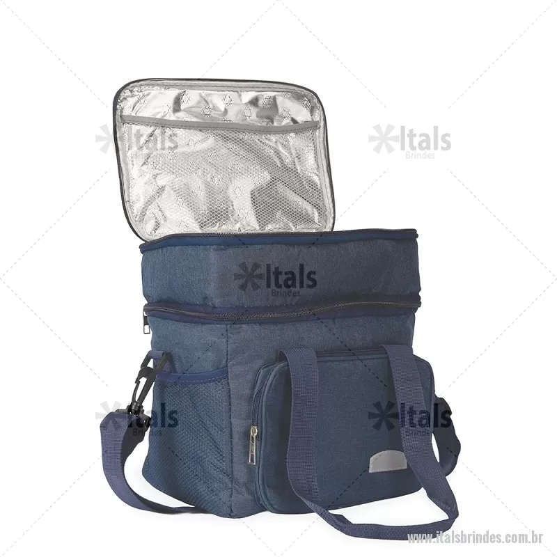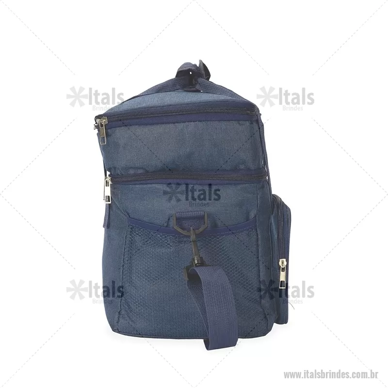 Bolsa térmica de 15 litros feita em Oxford resistente à água, com revestimento interno em PEVA e tampa com isolamento em alumínio. Conta com bolso frontal, dois bolsos laterais em tela, alças de mão com suporte de junção e alça transversal removível. Prática e ideal para manter alimentos e bebidas na temperatura por mais tempo. - - ITABT105