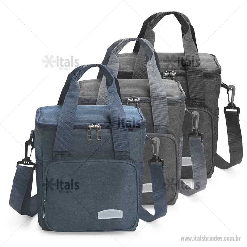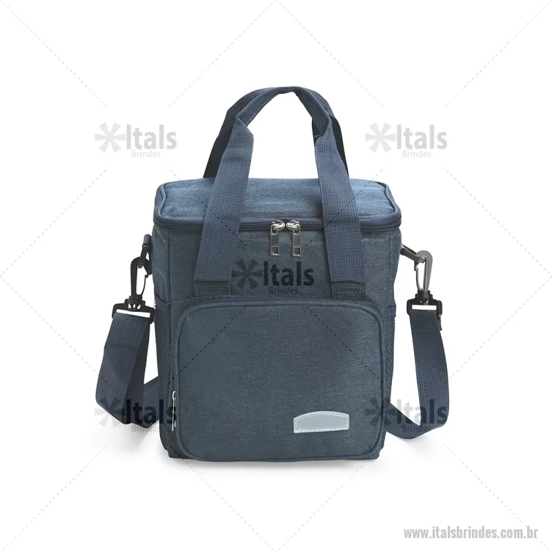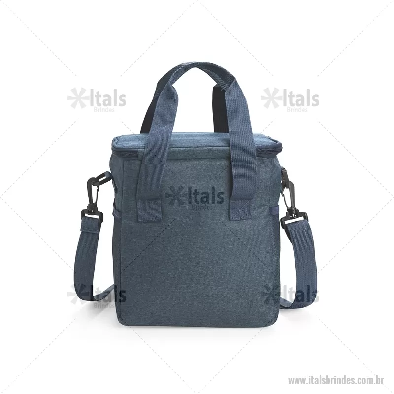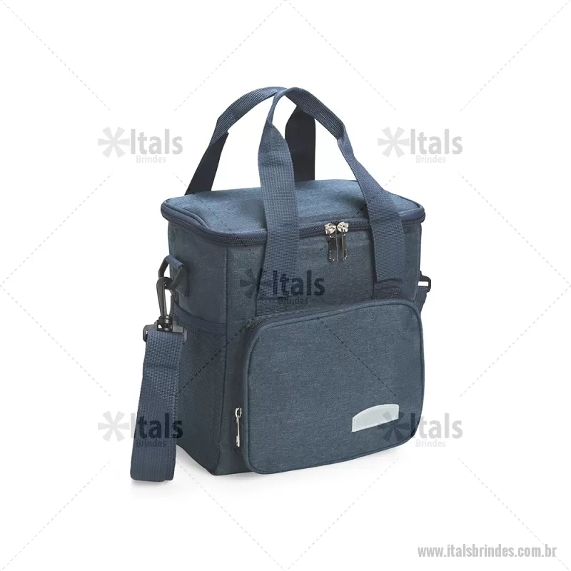 Bolsa térmica de 11 litros feita em Oxford resistente à água, com revestimento interno em PEVA e tampa isolada com folha de alumínio. Possui bolso frontal com zíper, dois bolsos laterais em tela, alças laterais fixas e alça transversal removível. Ideal para manter alimentos e bebidas na temperatura por mais tempo. - - ITABT106