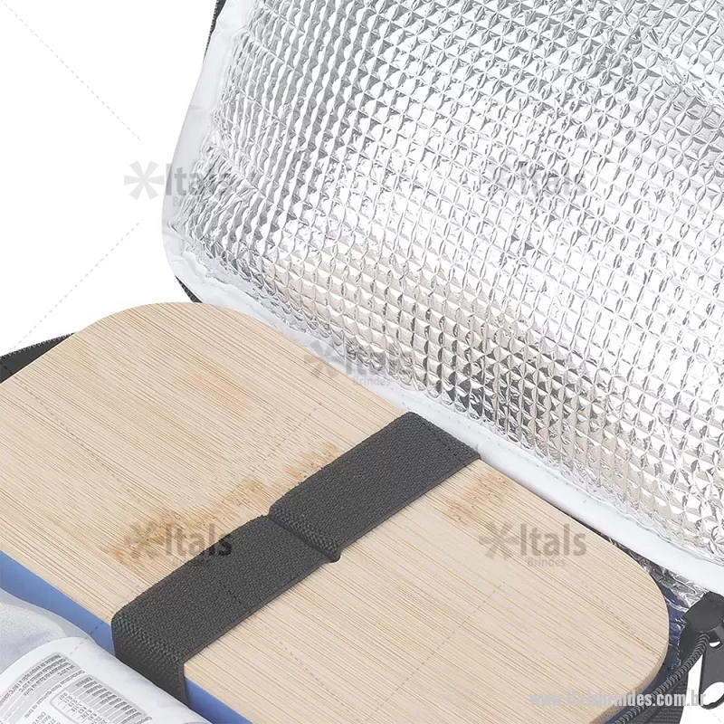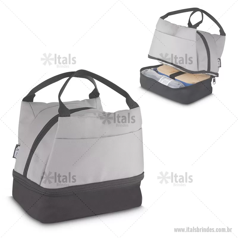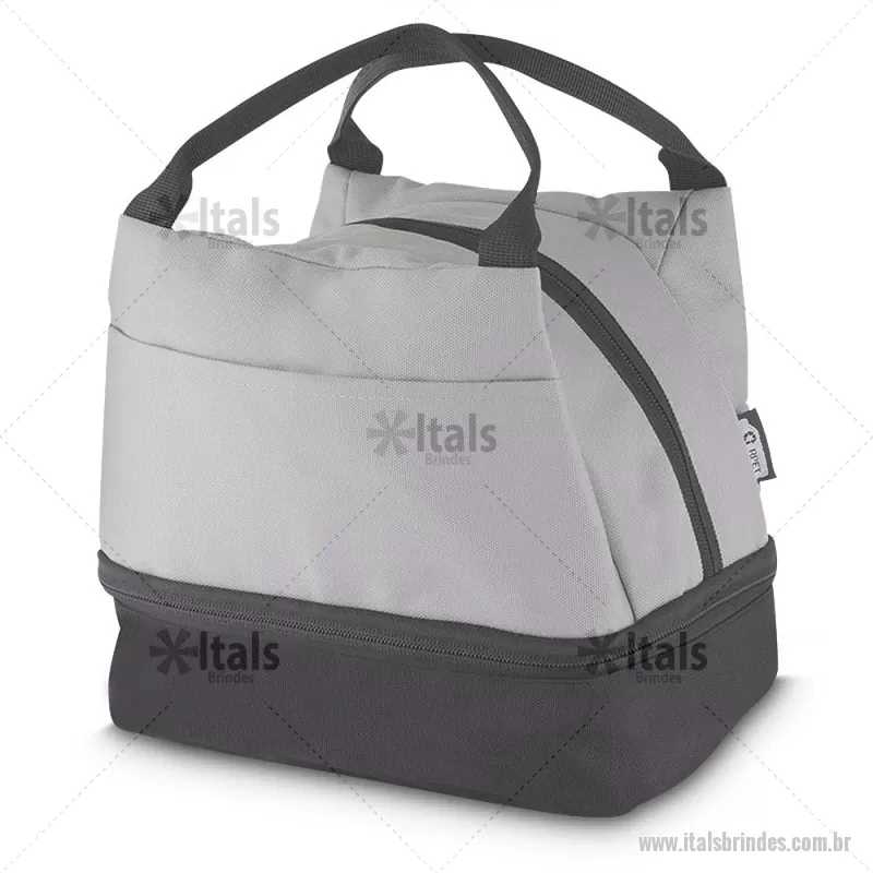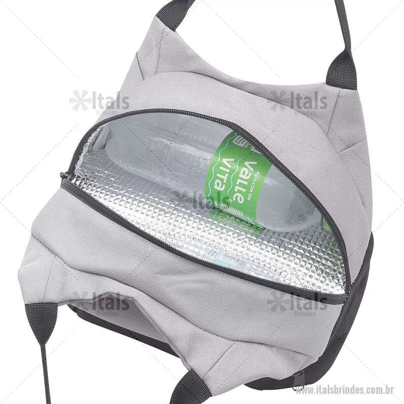 Bolsa térmica 7litros em tecido PET Reciclado com 2 compartimentos térmicos costurados, bolso frontal e alça de mão. Dimensão Produto: 21x24x15cm (AxLxP) Peso do Produto: 0,130kg Volume: 7L - - ITABT094