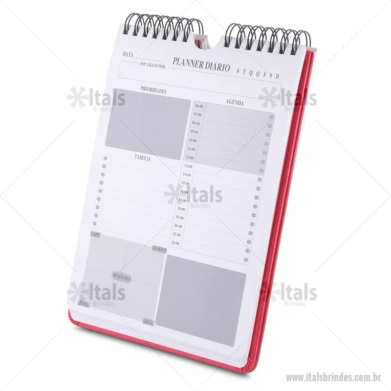 Caderno Planner com capa em PU 2 mm, 90 folhas 95 g/m², páginas para preenchimento diário, incluindo seções de prioridades, agenda do dia, tarefas e horários para refeições. Peso do Produto: 0,382kg Dimensão do Produto: 22,5x15,7cm - - ITACAD036