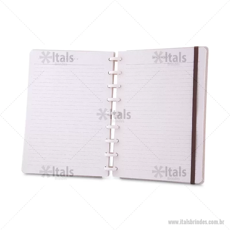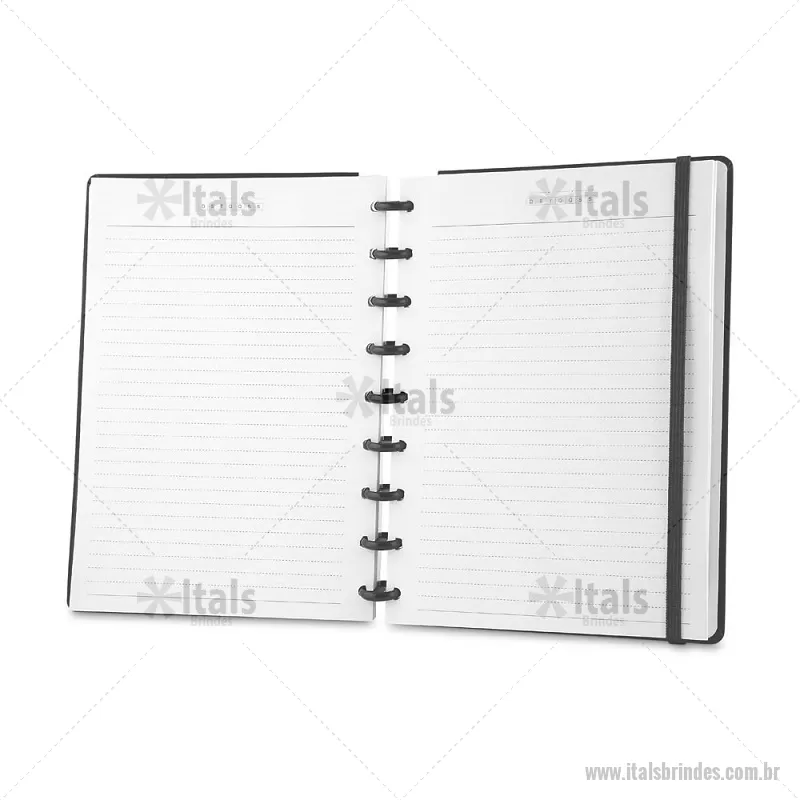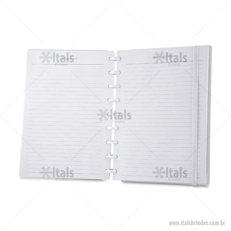 Caderno de anotações com folhas removíveis, capa dura cartonada revestida em material sintético, 80 folhas pautadas 75 g/m², calendário anual, manual de instruções, bolso plástico interno para documentos e elástico para fechamento seguro. Peso do Produto: 0,354kg Dimensão do Produto: 23,5x18cm - - ITACAD035