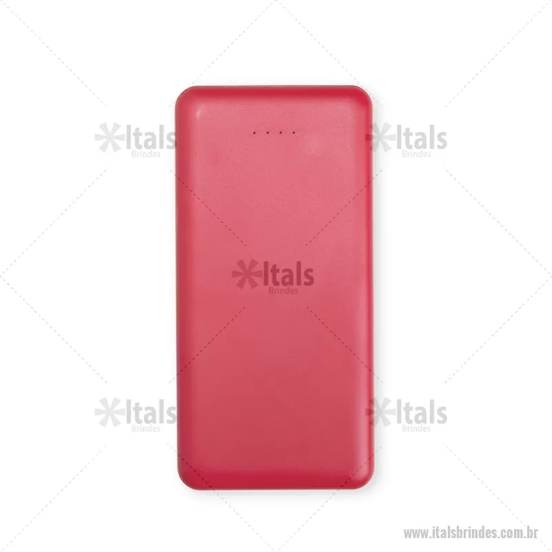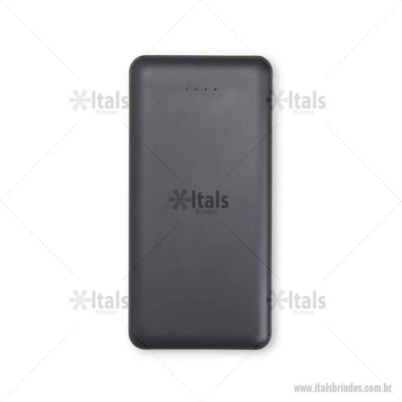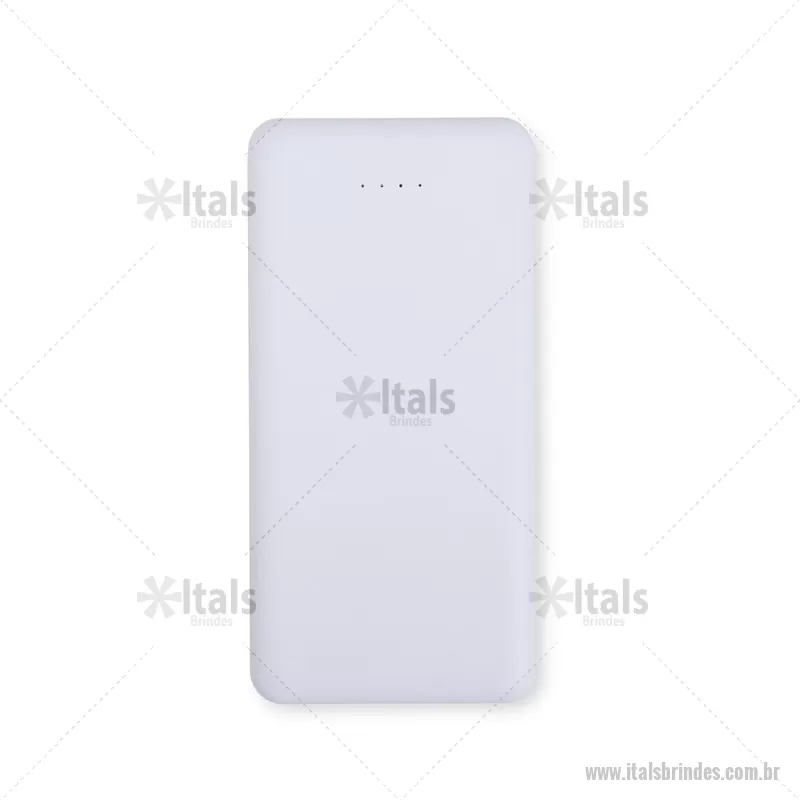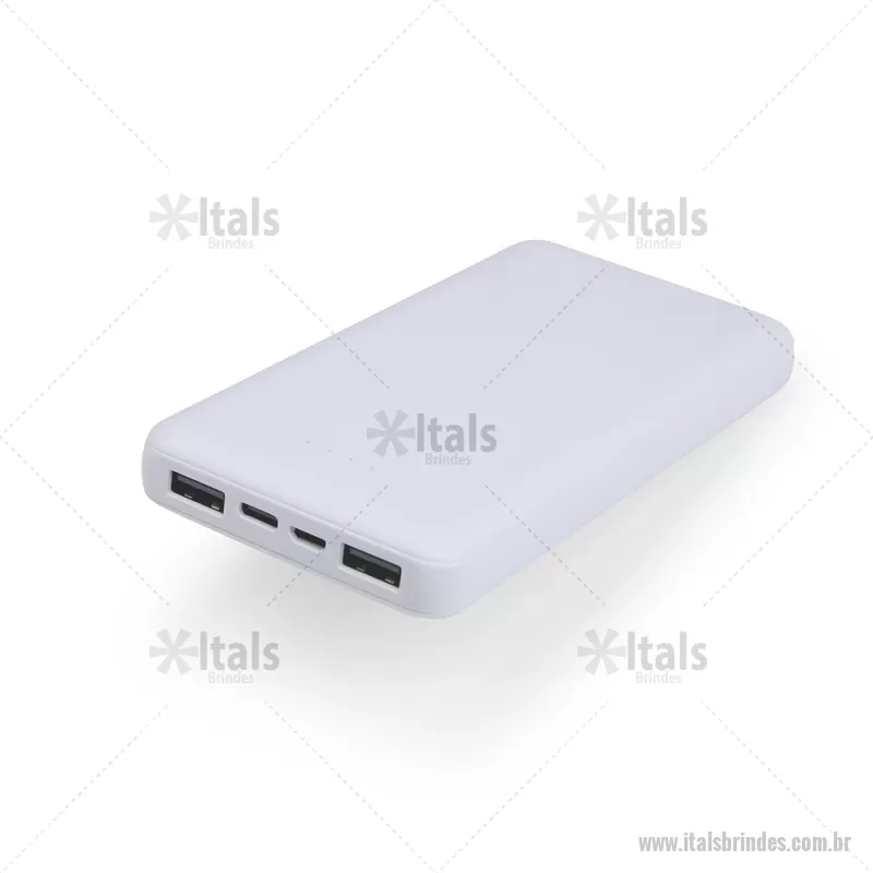 Power Bank 10.000mAh com Indicador LED Descrição: Power bank com estrutura em plástico com potência de 10.000mAh e quatro luzes de LED para indicar o status de carga do próprio carregador portátil. Possui quatro entradas diferentes: duas portas USB, uma porta Micro USB e outra USB-C. Altura : 14 cm x Espessura : 1,5 cm x Comprimento : 7 cm Peso aproximado (g): 243 - - ITATEC531