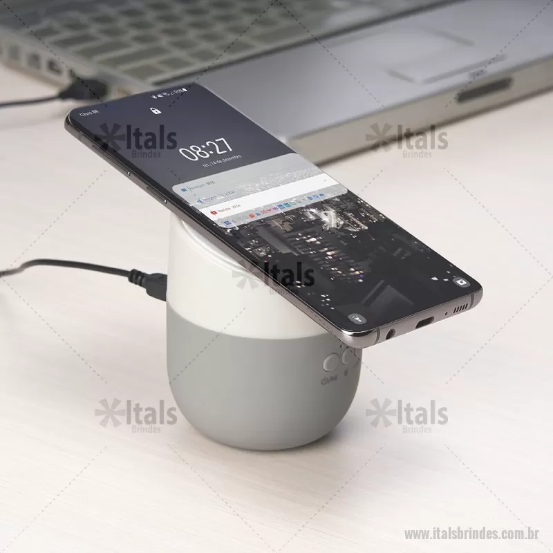 Caixinha de Som bluetooth com carregador por indução. Produzido em material plástico, a caixinha possui antiderrapantes emborrachados na parte inferior, e na área de indução. Para desfrutar do carregamento por indução (sem fio) é fundamental que o celular possua a tecnologia QI – desta maneira é possível carregar o celular posicionando-o sob carregador, sendo necessário apenas conectar o carregador à uma fonte de energia (USB ou diretamente na tomada). A caixinha executa nos modos bluetooth e cartão TF (microSD) Acompanha cabo USB. Medidas: Altura : 8,5 cm x Largura : 7 cm Peso aproximado (g): 180 Material: Plástico Entrada : DC5V/2000MA Potência Carregamento De Indução: 5W Distância Bluetooth: 10m Distância maxima para carregamento indução: 8mm - - ITATEC444