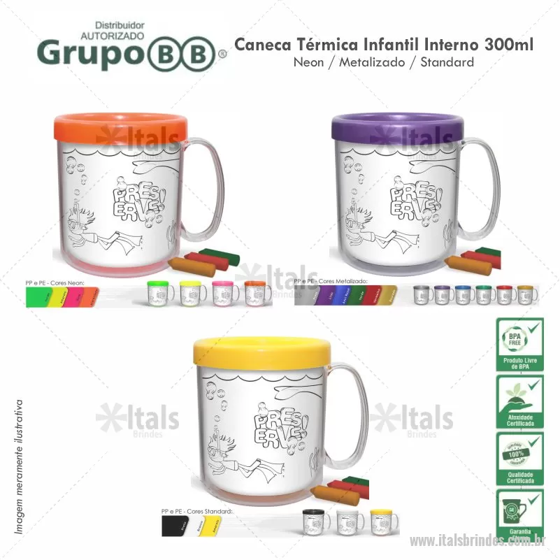 Caneca plástica personalizada injetada, atóxica, formada por duas peças encaixáveis e um refil para colorir. Acompanha 3 unidades de giz de cera. Capacidade de 300 ml. Refil nas cores - Linha Sólida: amarelo, branco, alaranjado, preto / Neon: Rosa, amarelo, verde, laranja / Metalizado: Azul, verde, vermelho, lilás, prata. Parte externa PS cristal Transparente. Brinde ideal para eventos e ações promocionais. Personalização 1 cor. Outras opções sob consulta Distribuidor Autorizado Grupo BB. - - ITAZ332