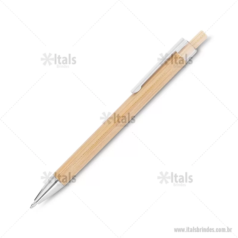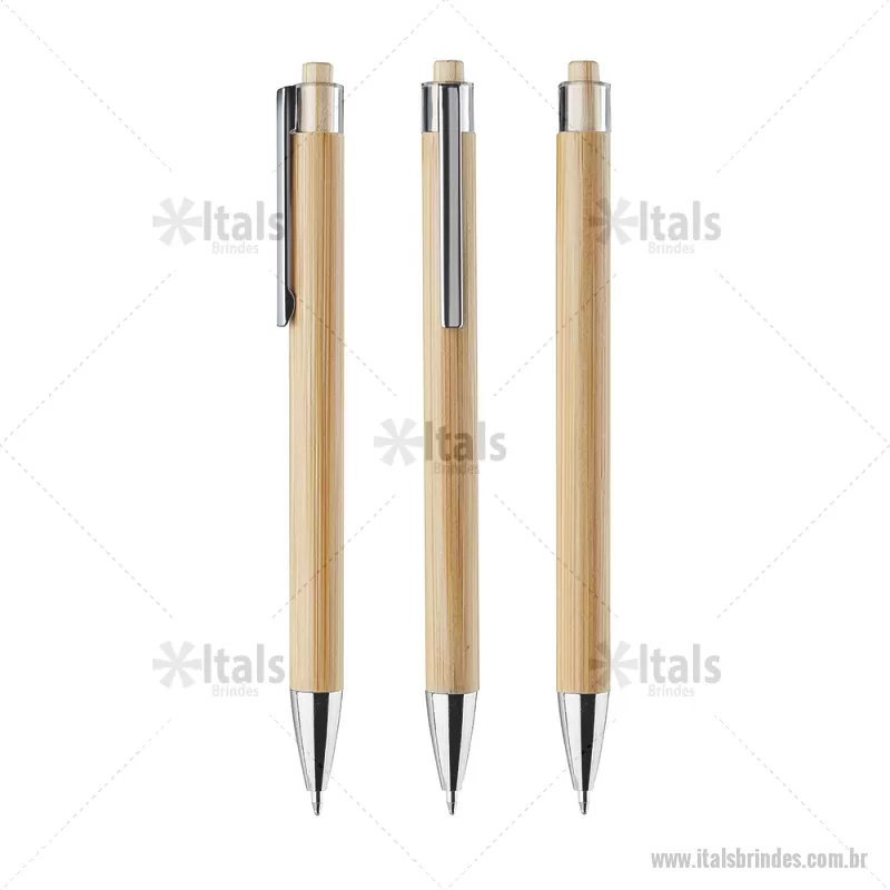 Caneta com corpo em bambu, acionador em bambu com detalhe plástico, ponteira e clipe cromado. Dimensão Produto: 14xø1cm Peso do Produto: 0,007kg - - ITACPECO072