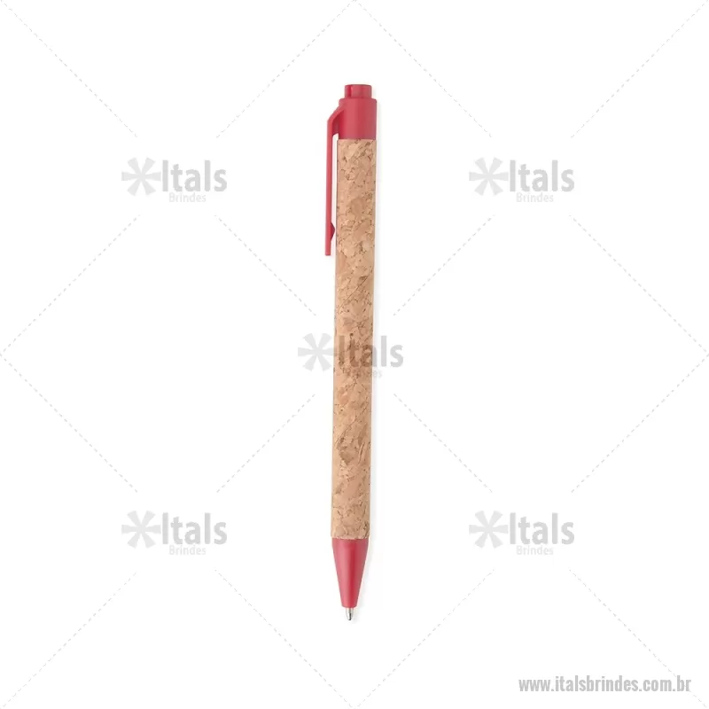 Caneta Ecológica de cortiça com carga esferográfica azul 1.0mm e acionamento por clique. Clipe plástico, acionador e ponteira plástica. - - ITACPECO068