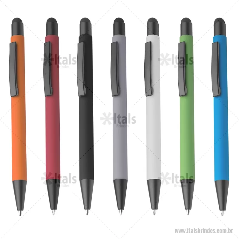 Caneta esferográfica em alumínio reciclavel com escrita em azul. Refil tipo parker com ponta touch emborrachada. - - ITACMT254