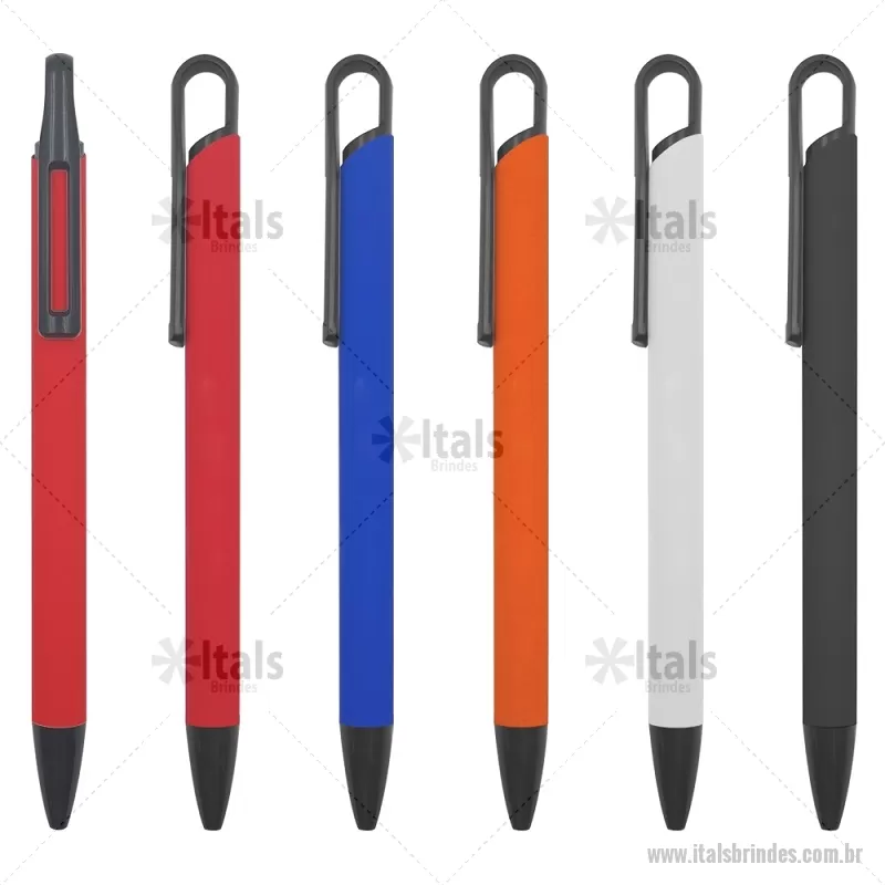 Caneta cilíndrica em metal com acabamento emborrachado cor e acionamento por clique e carga na cor azul. - - ITACMT265