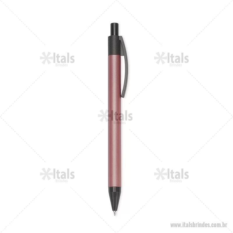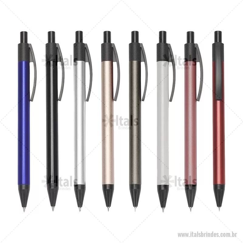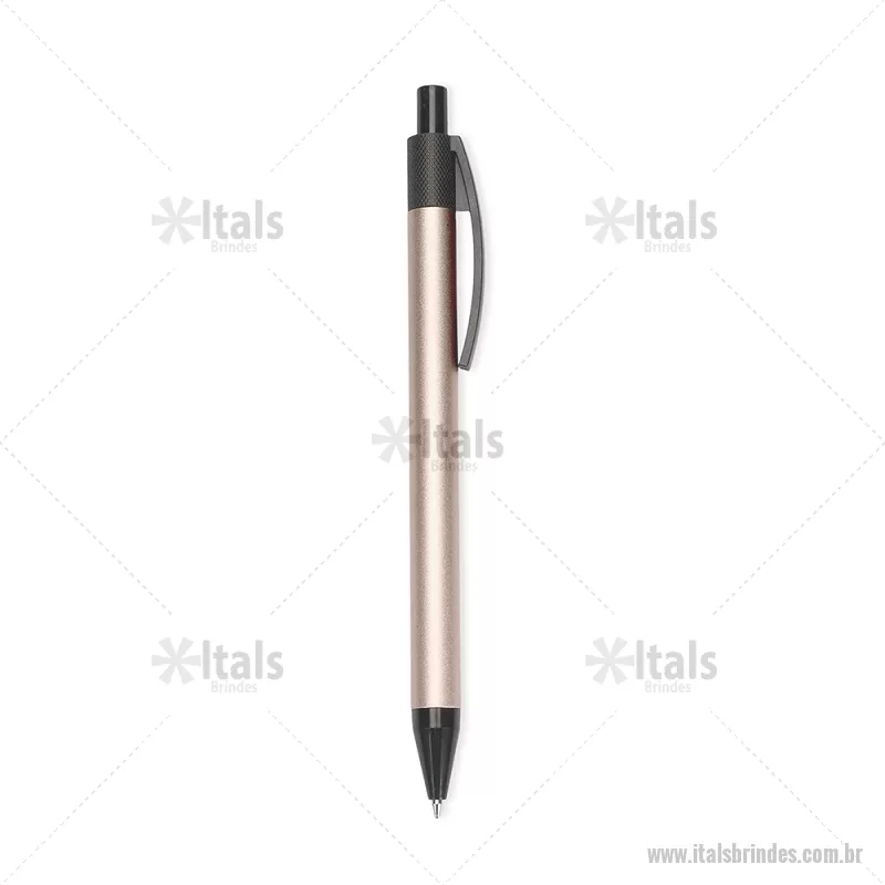 Caneta com corpo em metal, ponteira e clip em plástico, equipada com acionamento por clique. Possui carga esferográfica azul de 1,0 mm, garantindo escrita suave, leve e precisa para o uso diário. - - ITACMT301