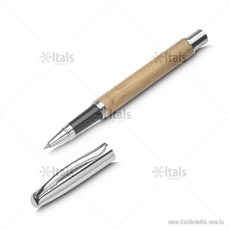Caneta corpo de bambu com detalhes em metal. Dimensão do Produto: 14xØ1,3cm (AxøD) Peso do Produto: 0,22kg - - ITACMT284