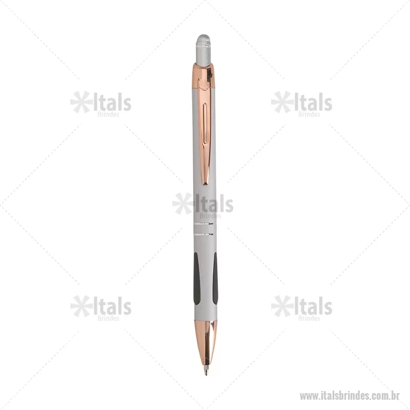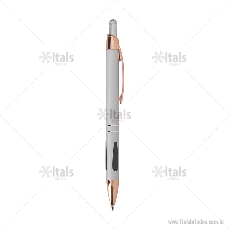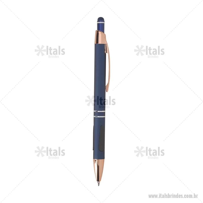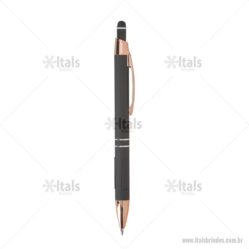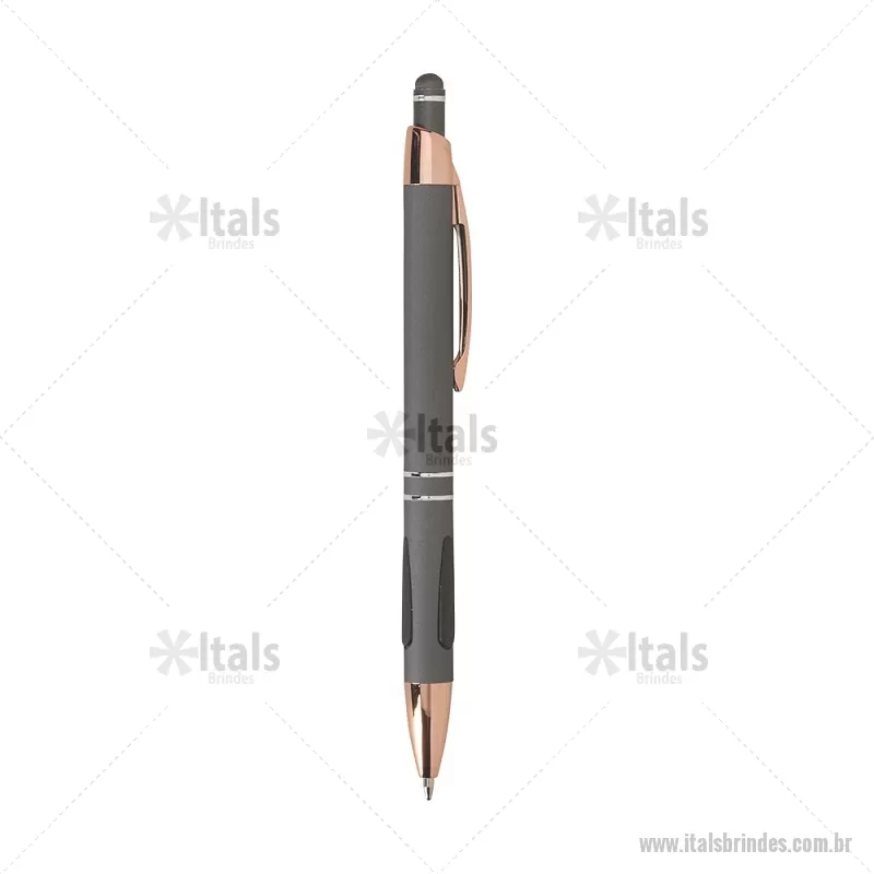 Caneta em metal com detalhes emborrachados, carga esferográfica azul 1,0 mm e acionamento por clique. Possui ponta touch emborrachada para uso em telas sensíveis ao toque, unindo escrita e praticidade em um só item. - - ITACMT295