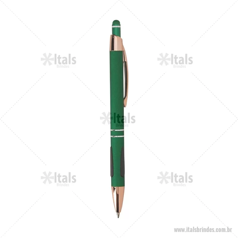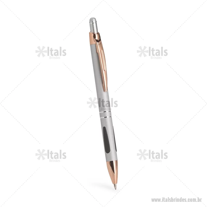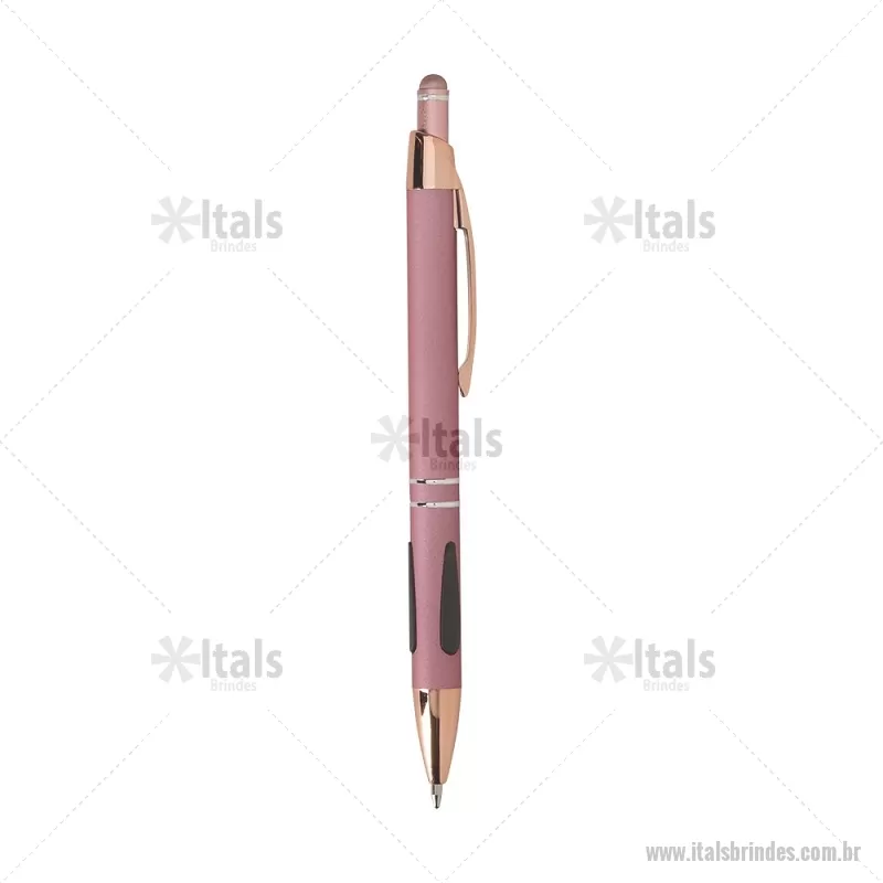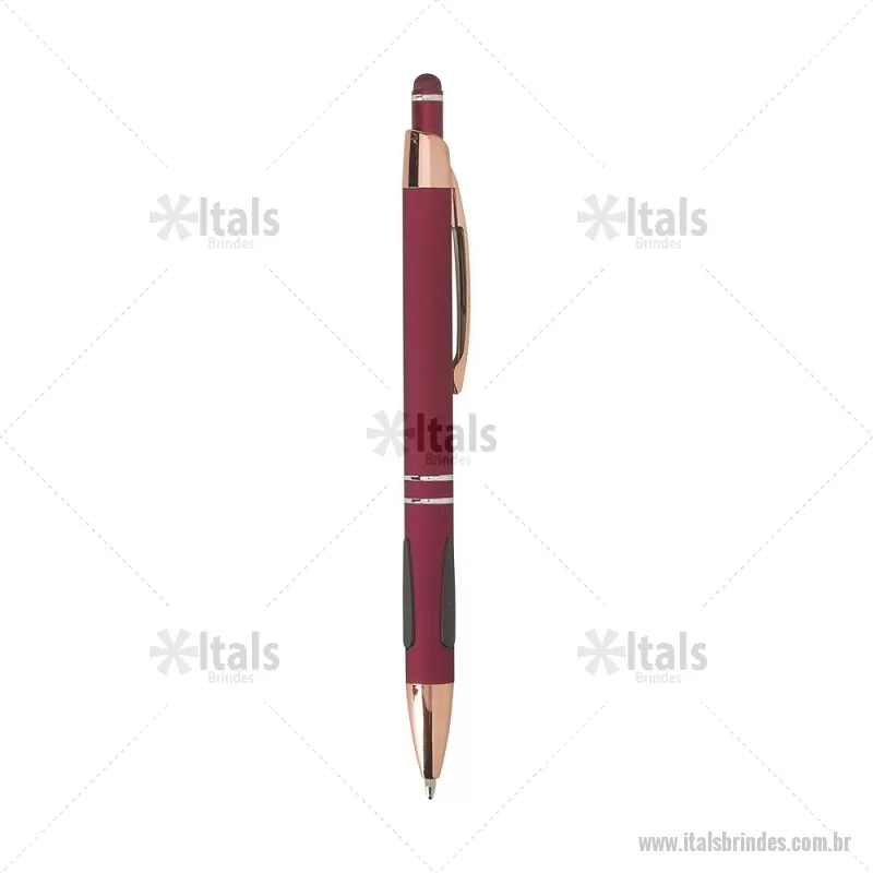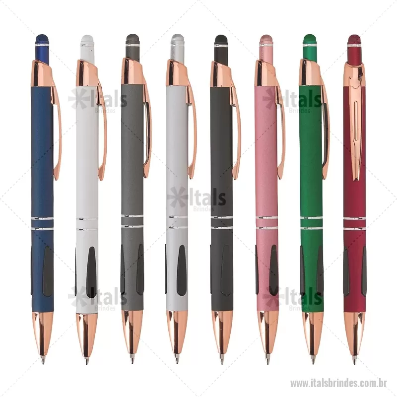 Caneta em metal com detalhes emborrachados, carga esferográfica azul 1,0 mm e acionamento por clique. Possui ponta touch emborrachada para uso em telas sensíveis ao toque, unindo escrita e praticidade em um só item. - - ITACMT295
