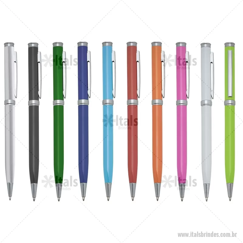 Caneta semimetal com pintura brilhante colorida e detalhes em prata. Clip metálico, acionamento por giro e carga esferográfica azul. - - ITACMT207
