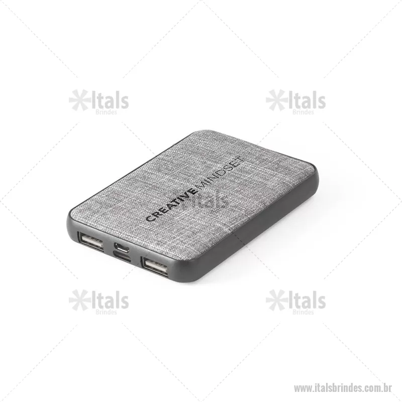 Bateria/ Carregador portátil 100% rPET, com bateria de lítio, capacidade de 5.000 mAh e entrada/saída de 5V/2A. Inclui uma porta para microUSB, uma porta USB-C e duas portas USB. Fornecida em caixa presente de papel craft. 65 x 98 x 10 mm - - ITATEC477