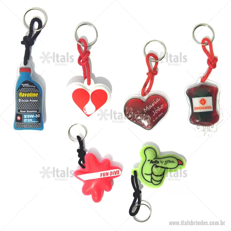 Chaveiro flutuantes diversos modelo e cores com gravação em silk screen, cromia, alto relevo. Ideal para dar de brinde, modelos emborrachado: liso, com transparência ou gel. - - ITACHV044