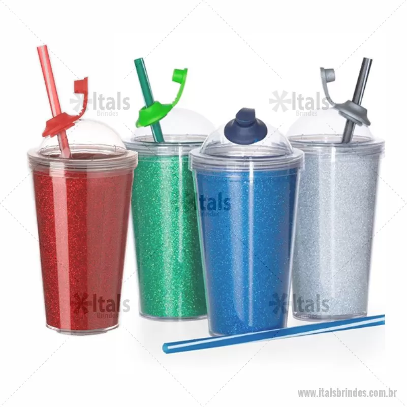 Copo Acrílico Parede Dupla com Tampa e Canudo Personalizado