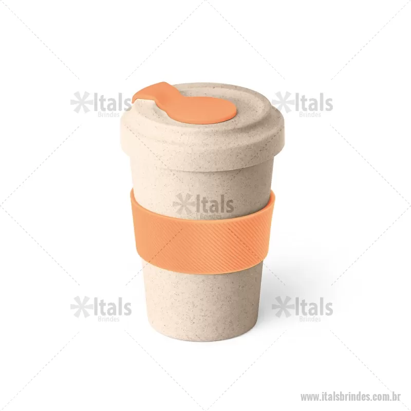 Copo de viagem 500 ml em fibra de bambu (50%) e PP (50%), com tira de silicone no corpo para facilitar o transporte. A tampa em silicone no topo roda para tapar abertura e prevenir salpicos. Food grade. Medidas do produto: ø9,5 x 14,0 cm - - ITACPO081