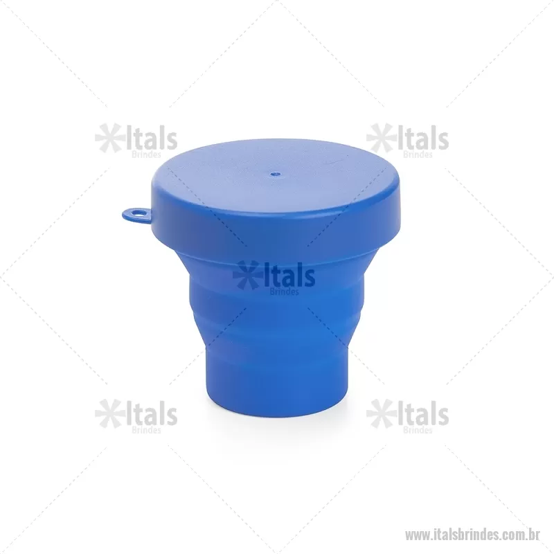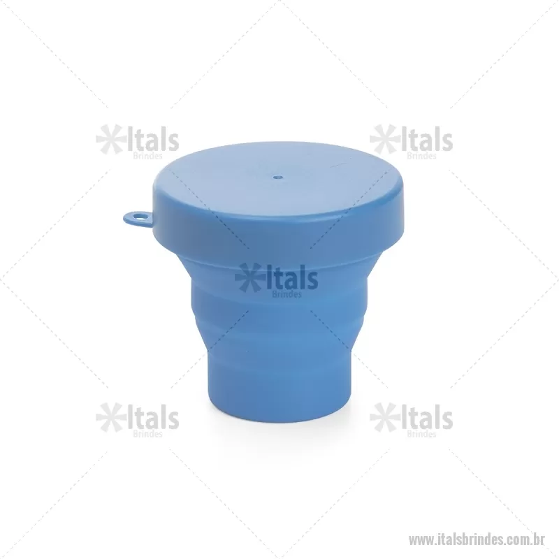 Copo retrátil com capacidade de 150ml, livre de BPA. Contém tampa plástica de encaixe com acesso para chaveiro.