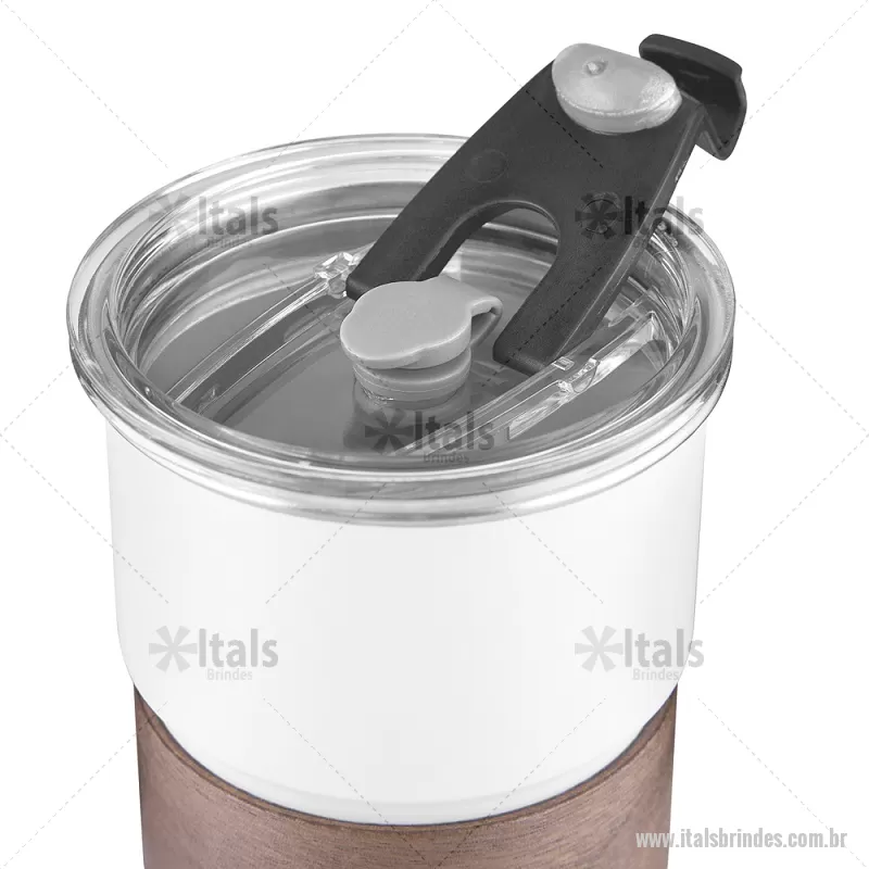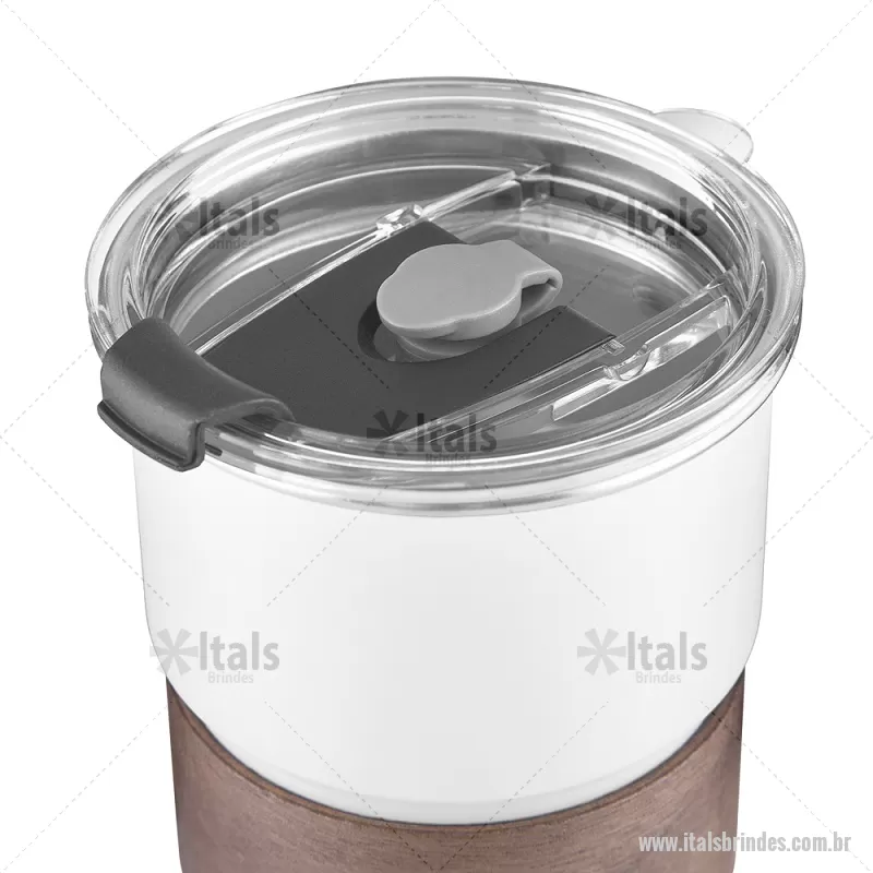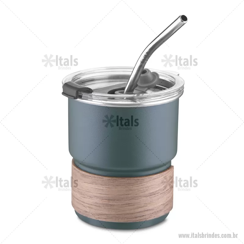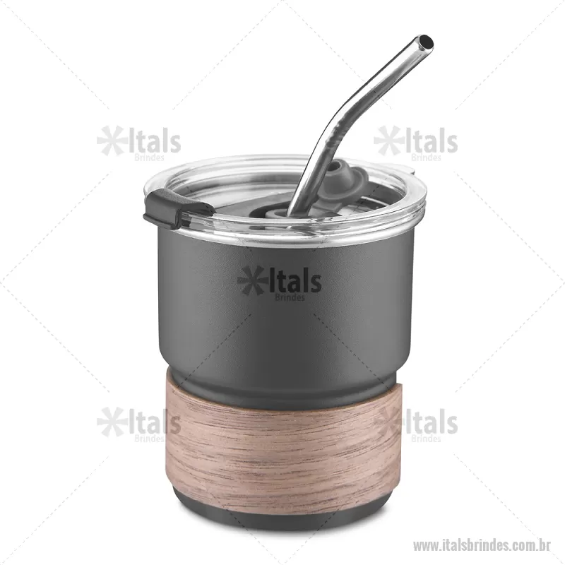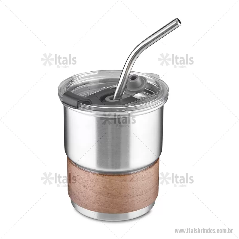 Copo em inox com Canudo Copo de parede simples em aço inox 304 com capacidade de 250ml, com canudo em inox. Tampa em plástico poliestireno (PS) que também possui um bico como forma alternativa de uso. Com pegador em fibra de noz. Possui acabamento externo com pintura fosca. Peso do Produto: 0,100kg Dimensão do Produto: 9xø7,5cm - - ITACPO150