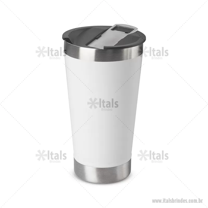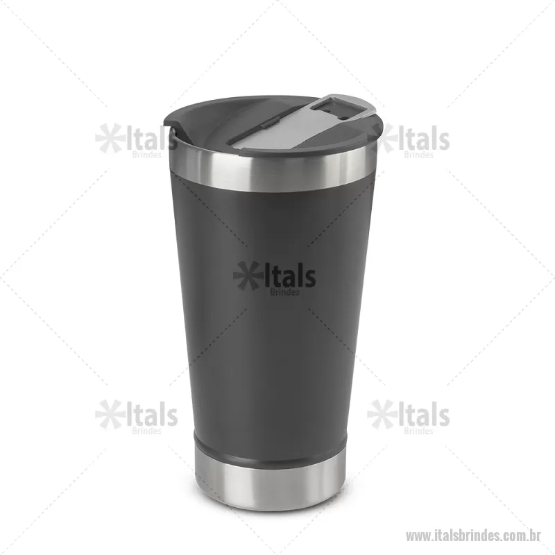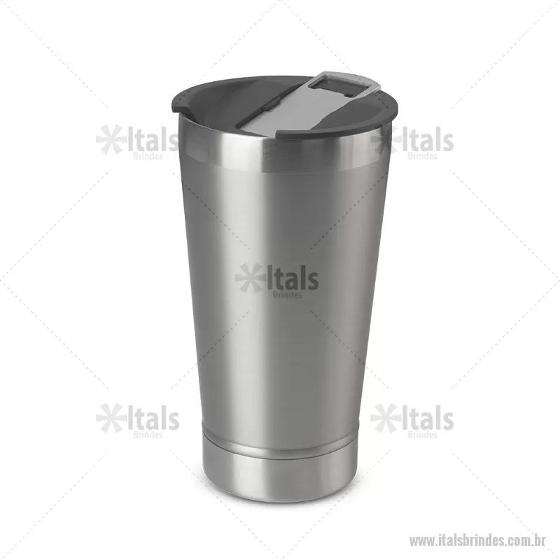 Copo térmico em aço inox com parede dupla, detalhe em aço escovado, tampa plástica com anel de silicone para vedação com abridor de garrafas em inox. Capacidade 500ml, pintura fosca. Dimensão do produto: Alt. 15 . Diâmetro 8,5cm Peso do produto: 0,270 - - ITACPO105