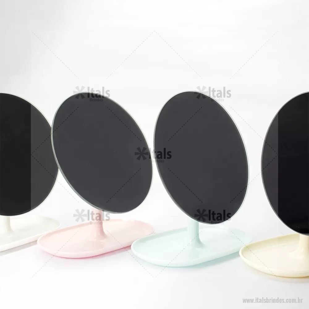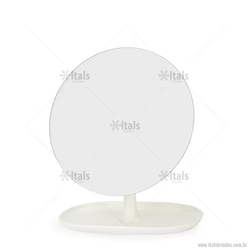 Espelho de Mesa Plástico Descrição: Espelho de mesa com estrutura compacta em plástico de fácil montagem. Conta com base fixa e pedestal giratório em 360 graus que permite ajuste prático em diferentes ângulos e posições. Altura : 25 cm x Largura : 10,7 cm x Comprimento : 15,8 cm Tamanho total aproximado (CxL): Diâmetro: 16 cm Peso aproximado (g): 195 - - ITAFEM118
