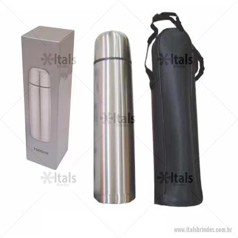 Garrafa 1 litro em inox com tampa rosqueável, tampa interna em plástico resistente(basta um clique para abrir ou fechar). Acompanha estojo protetor em couro sintético com alça de nylon. Produto NÃO TÉRMICO. 32.5 x 8 cm - - ITAGAR002B