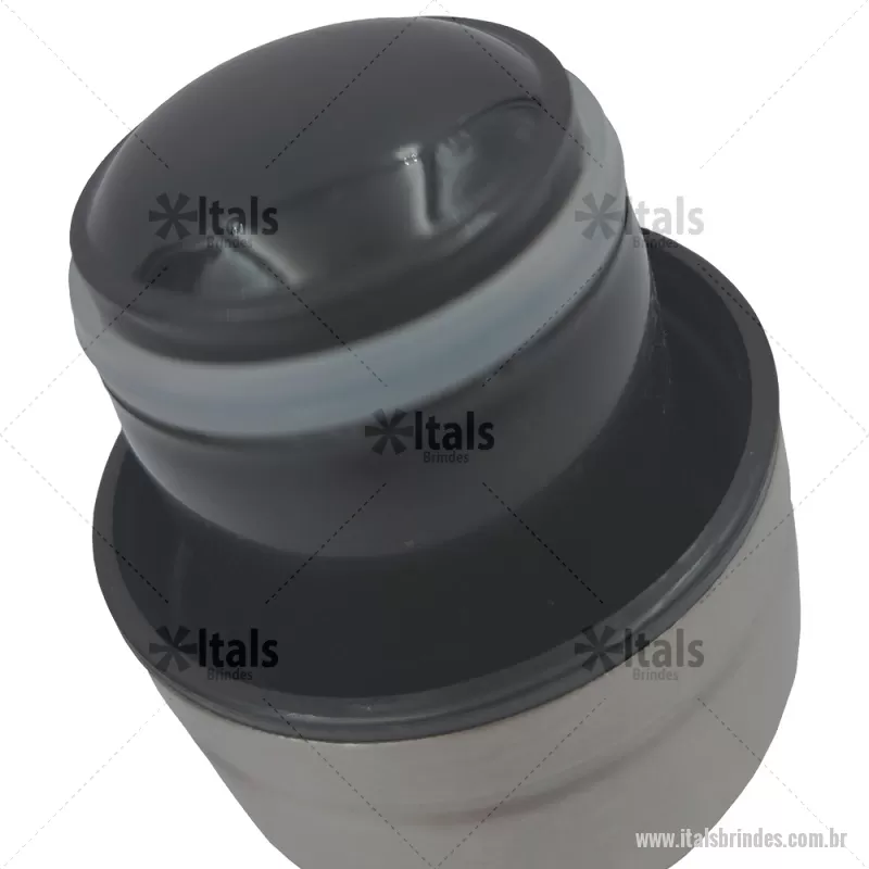 Garrafa térmica em inox com capacidade de 500ml, acabamento da cor prata brilhante, acabamento da cor preta fosco. Tampa de rosca, com anel de silicone para a perfeita vedação. Dimensões | 27cm Diâmetro | 7cm Tamanho total | Capacidade 500ML Peso (gm) | 278 - - ITAGAT059