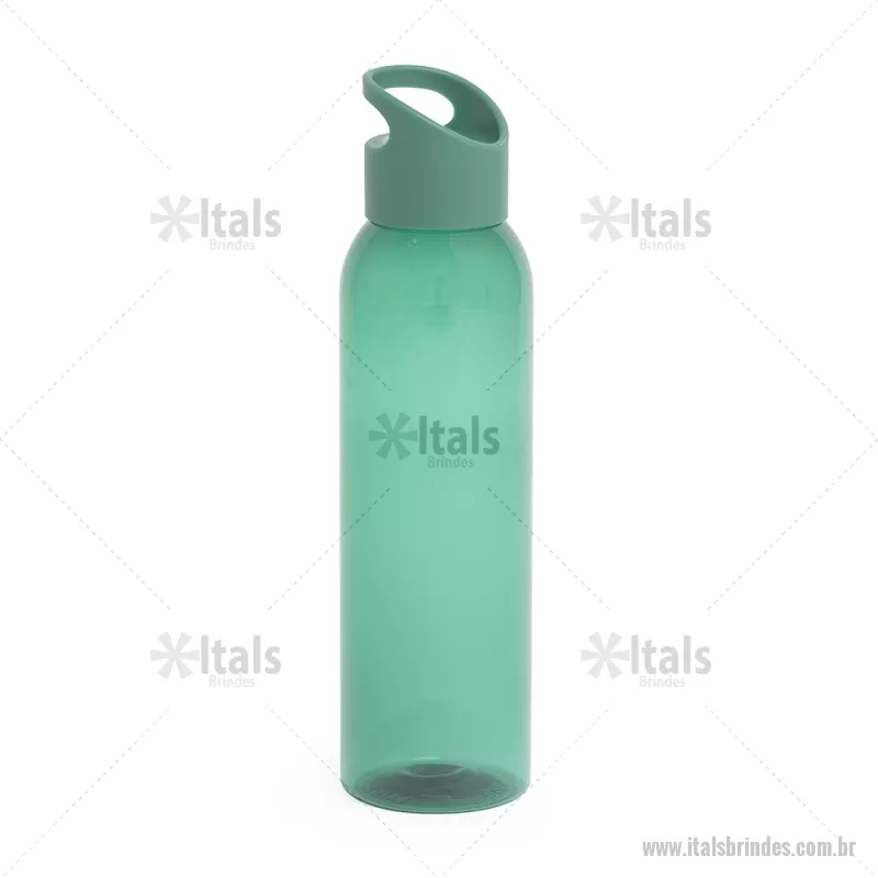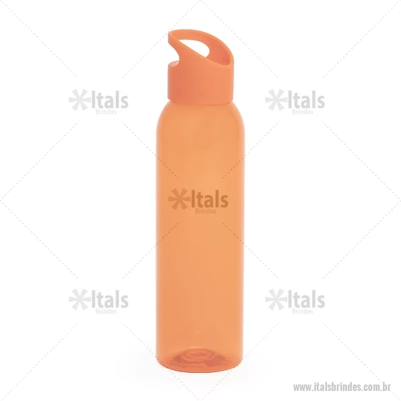 Garrafa plástica 700ml livre BPA com tampa rosqueável e alça para transporte.