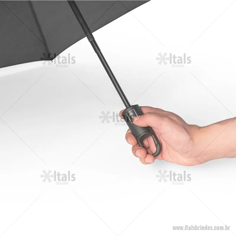 GUSTAVO. Guarda-chuva dobrável de 23'' em 100% poliéster reciclado pongee 190T (100% rPET) com abertura e fecho automático Guarda-chuva de 23'' em poliéster 100% reciclado pongee 190T, com varetas em fibra de vidro, haste metálica e pega em ABS 35% reciclado. O guarda-chuva, dobrável em 3 seções, tem abertura e fecho automático e é à prova de vento. Fornecido em bolsa. Medidas: ø1050 x 330 mm | Sacola: ø50 x 250 mm Peso do Produto (g.): 380 - - ITAGCH052