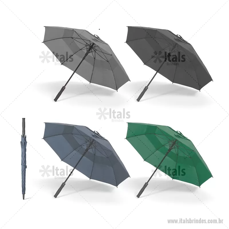 Guarda-chuva em 100% poliéster reciclado 190T (100% rPET) com abertura automática, com varetas em fibra de vidro e pega em ABS reciclado. Guarda-chuva com abertura automática e à prova de vento. Fornecido em bolsa de poliéster reciclado. Medidas:ø1055 x 840 mm Peso do Produto (g.): 543 - - ITAGCH051