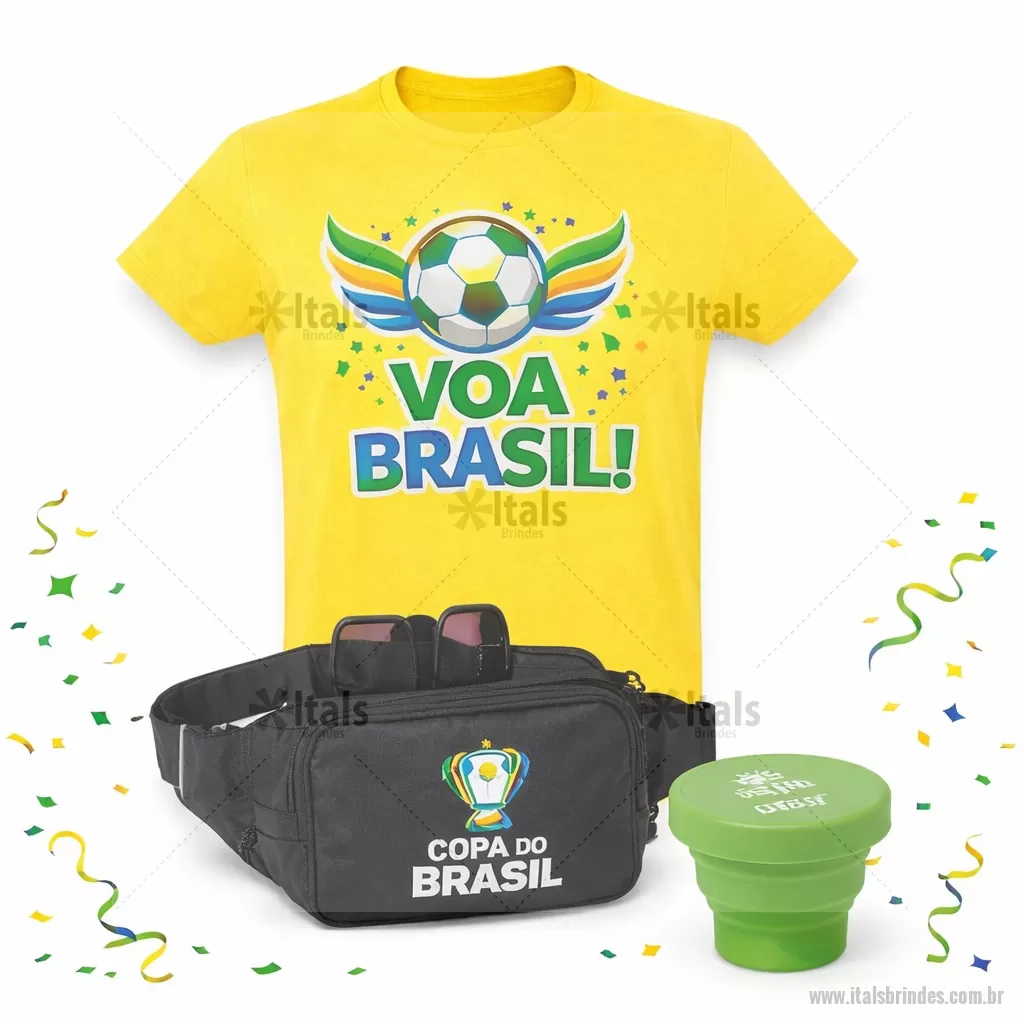 Kit Carnaval 3 Peças Contém: 1 Pochete de Nylon Impermeável, oferece proteção contra a água, garantindo que os itens essenciais fiquem protegidos. Com dois compartimentos com zíper, sendo o principal com um bolso de malha elástica, é possível organizar dinheiro, chaves, fones de ouvido, maquiagens e muito mais. As alças ajustáveis. - Gravação em Silk screen 1 cor (POC009) 1 Copo sanfonado. Copo retrátil com capacidade de 150ml, livre de BPA. Contém tampa plástica de encaixe com acesso para chaveiro. - Gravação em Silk screen 1 cor (CPO140) 1 Camiseta unissex de corte regular em malha 100% algodão (135 g/m2) com fio 30/1 misto. Com gola em ribana 1,5x1,5 com fita de reforço e com costura dupla nas mangas, barra de fundo e laterais. Tamanhos: P, M, G, GG. - Gravação em Transfer Colorido (CMS005) * Verificar cores de produtos Disponíveis. - - ITAKIT030