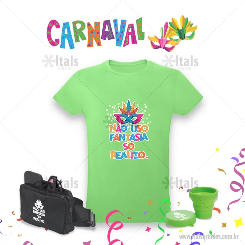 Kit Carnaval 3 Peças Contém: 1 Pochete de Nylon Impermeável, oferece proteção contra a água, garantindo que os itens essenciais fiquem protegidos. Com dois compartimentos com zíper, sendo o principal com um bolso de malha elástica, é possível organizar dinheiro, chaves, fones de ouvido, maquiagens e muito mais. As alças ajustáveis. - Gravação em Silk screen 1 cor (POC009) 1 Copo sanfonado. Copo retrátil com capacidade de 150ml, livre de BPA. Contém tampa plástica de encaixe com acesso para chaveiro. - Gravação em Silk screen 1 cor (CPO140) 1 Camiseta unissex de corte regular em malha 100% algodão (135 g/m2) com fio 30/1 misto. Com gola em ribana 1,5x1,5 com fita de reforço e com costura dupla nas mangas, barra de fundo e laterais. Tamanhos: P, M, G, GG. - Gravação em Transfer Colorido (CMS005) * Verificar cores de produtos Disponíveis. - - ITAKIT030