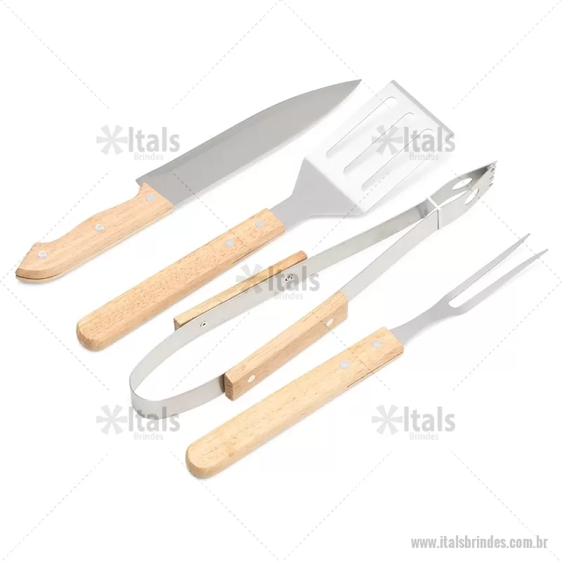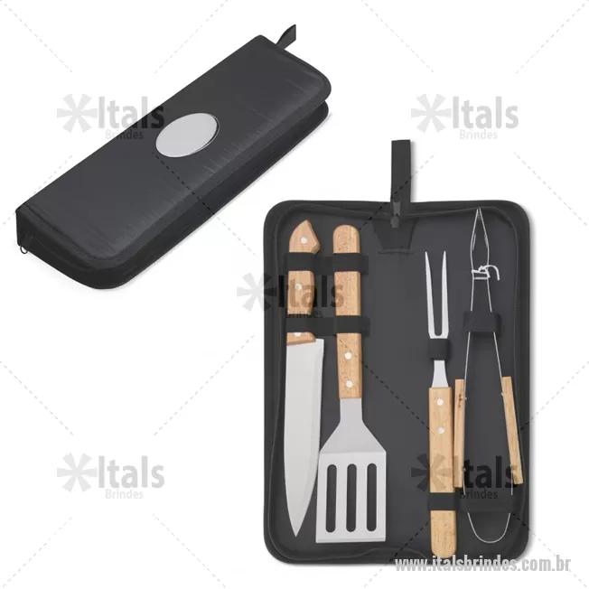 Kit Churrasco 4 Peças em estojo de nylon com alça. Possui: pegador, garfo, faca e espátula de madeira, acompanha plaquinha para personalização, proteções plásticas(faca e garfo) e parte interna com elástico para guardar as peças. Medidas Kit: Largura : 12 cm x Comprimento : 38,4 cm Medidas Pegador (A x L): 34 cm x 2,8 cm Medidas Garfo (A x L): 32 cm x 2,6 cm Medidas Faca (A x L): 33 cm x 3,8 cm Medidas Espátula (A x L): 32,6 cm x 7,1 cm Peso aproximado (g): 589 - - ITAKCH083