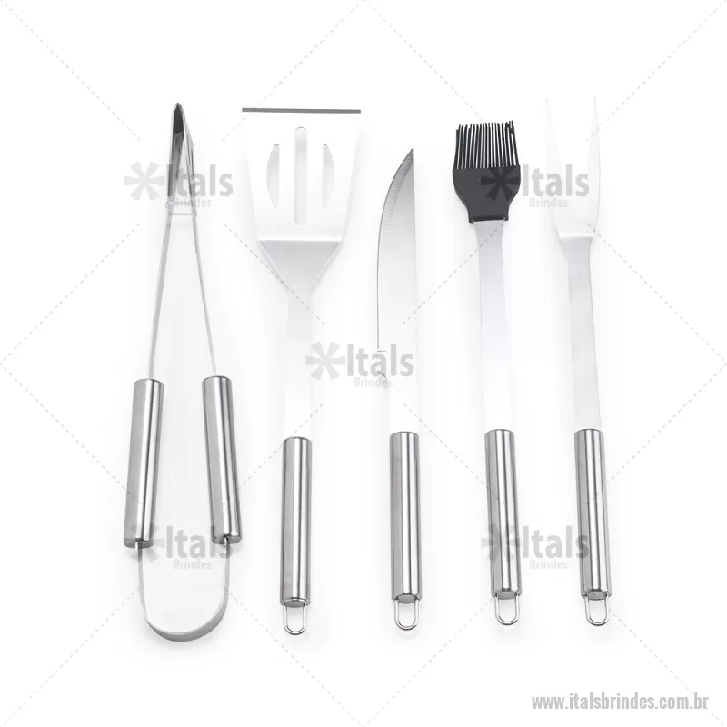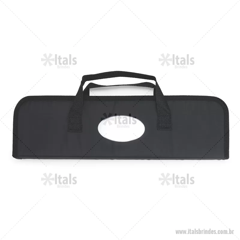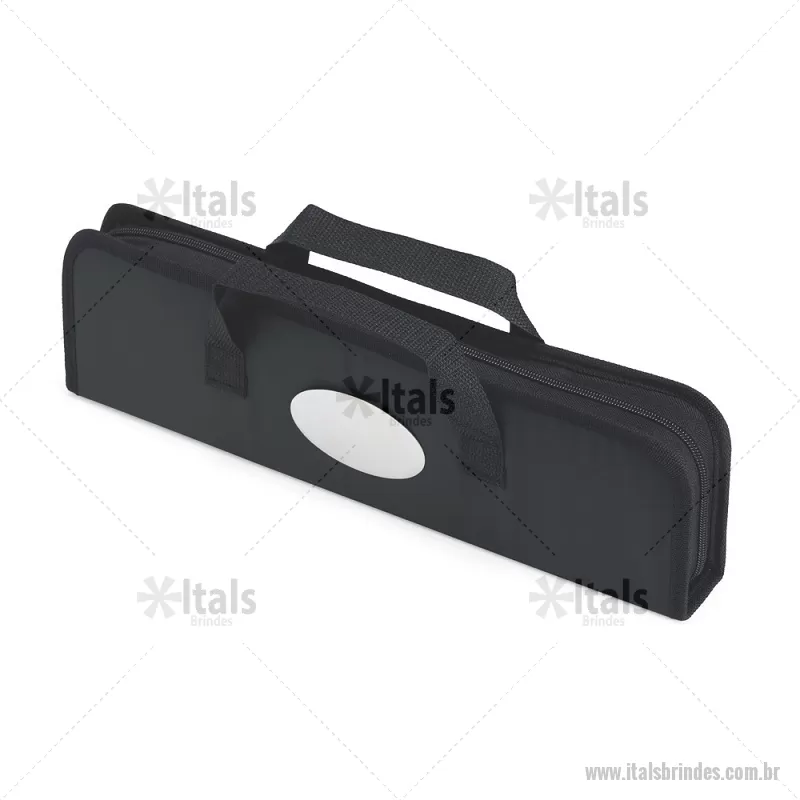 Kit Churrasco 5 Peças Descrição: Kit churrasco com cinco peças em inox. O conjunto inclui: uma faca de 6 polegadas, um garfo, uma espátula, um pincel com cerdas de silicone e um pegador. Acompanha estojo em nylon com um par de alças para transporte e placa metálica personalizável com verso autoadesivo para fixação. Altura : 4,5 cm x Largura : 11 cm x Comprimento : 38,5 cm Peso aproximado (g): 662 - - ITAKCH094