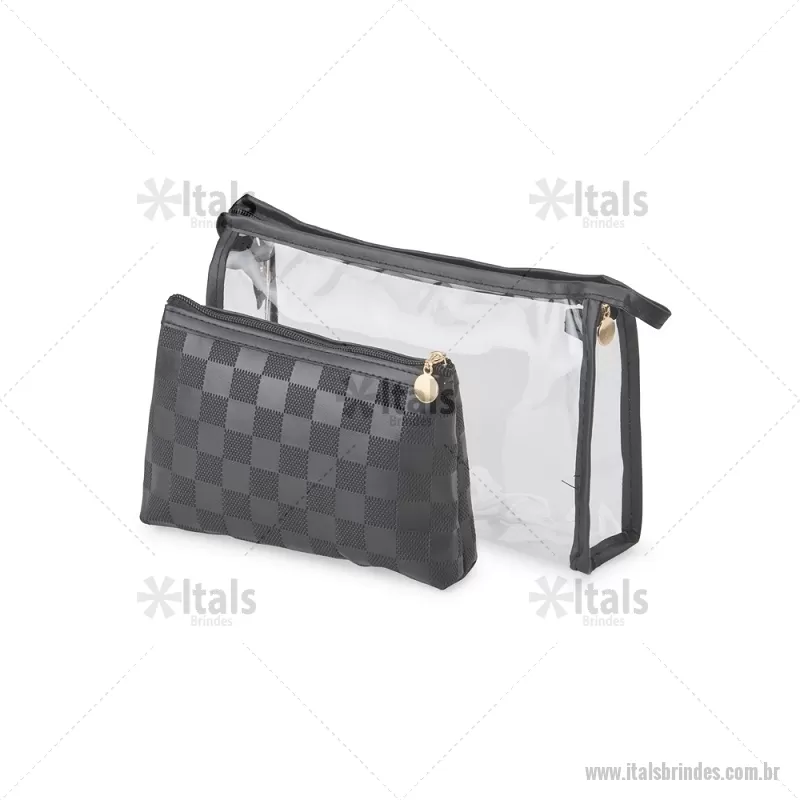 Kit nécessaire duas peças em PU e PVC. Tamanho total aproximado (CxL): Altura : N.1: 17 cm x Largura : N.1: 23 cm x Profundidade : N.1: 7 cm Altura : N.2: 13 cm x Largura : N.2: 19 cm x Profundidade : N.2: 5 cm Peso aproximado (g): 120 - - ITANC117