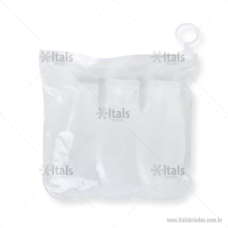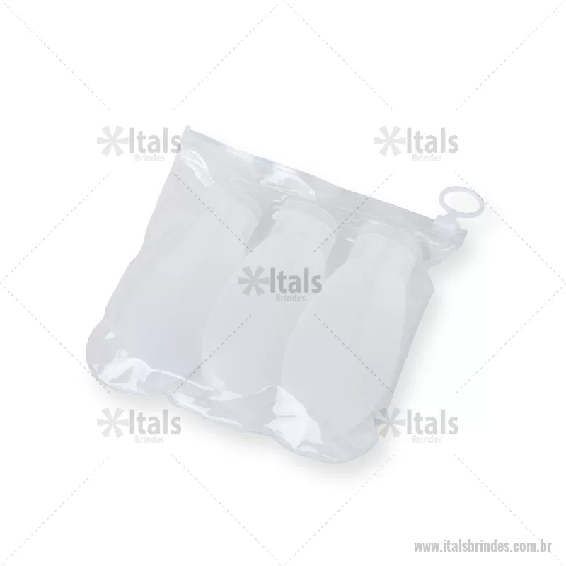 O kit viagem 3 Peças é a escolha perfeita para quem busca praticidade e organização durante as viagens. O conjunto inclui três frascos plásticos de 60ml, ideais para transportar líquidos e produtos de higiene pessoal, respeitando as normas de segurança para viagens aéreas. O estojo de PVC com ziplock mantém os itens organizados e seguros, além de evitar que a umidade espalhe para a área externa, caso os itens estejam molhados. Estojo: Altura : 14,9 cm x Largura : 15,1 cm Tamanho total aproximado (CxL): Frasco 10,7 cm x 5,1 cm Peso aproximado (g): 50 - - ITAKVG018